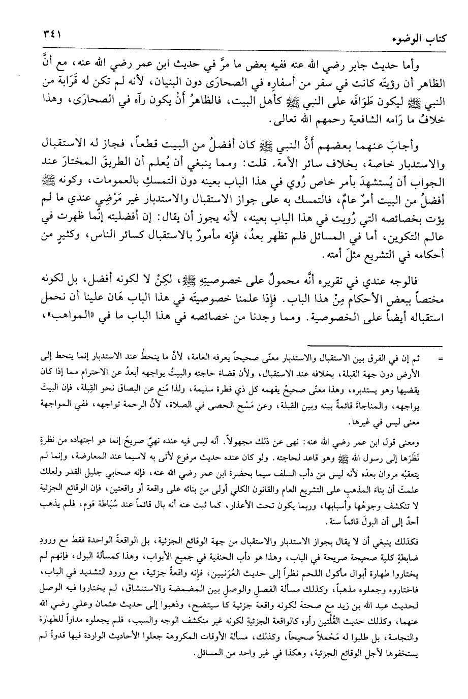 فكذلك ينبغي أن لا يقال بجواز الاستدبار والاستقبال من جهة الوقائع الجزئية، بل الواقعةُ الواحدة فقط مع ورودِ ضابطةٍ كلية صحيحة صريحة في الباب، وهذا هو دأب الحنفية في جميع الأبواب، وهذا كمسألة البول، فإنهم لم يختاروا طهارة أبوال مأكول اللحم نظرًا إلى حديث العُرَنيين، فإِنه واقعةٌ جزئية، مع ورود التشديد في الباب، فاختاروه وجعلوه مذهبًا، وكذلك مسألة الفصلِ والوصلِ بين المضمضة والاستنشاق، لم يختاروا فيه الوصل لحديث عبد الله بن زيد مع صحتهَ لكونه واقعة جزئية كما سيتضح، وذهبوا إلى حديث عثمان وعلي رضي الله عنهما، وكذلك حديث القُلَّتين رأوه كالواقعة الجزئيةِ لكونه غير منكشف الوجه والسبب، فلم يجعلوه مدارًا للطهارة والنجاسة، بل طلبوا له مَحملًا صحيحًا، وكذلك، مسألة الأوقات المكروهة جعلوا الأحاديث الواردة فيها قدوةً لم يستخفوها لأجل الوقائع الجزئية، وهكذا في غير واحد من المسائل.