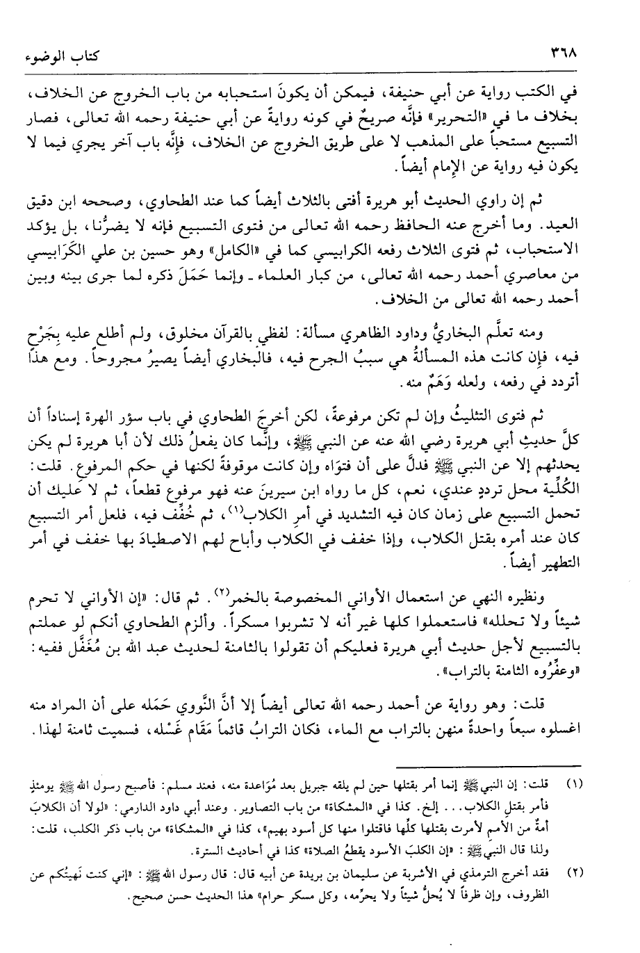 في الكتب رواية عن أبي حنيفة، فيمكن أن يكونَ استحبابه من باب الخروج عن الخلاف، بخلاف ما في «التحرير» فإنَّه صريحٌ في كونه روايةً عن أبي حنيفة رحمه الله تعالى، فصار التسبيع مستحبًا على المذهب لا على طريق الخروج عن الخلاف، فإِنَّه باب آخر يجري فيما لا يكون فيه رواية عن الإِمام أيضًا.