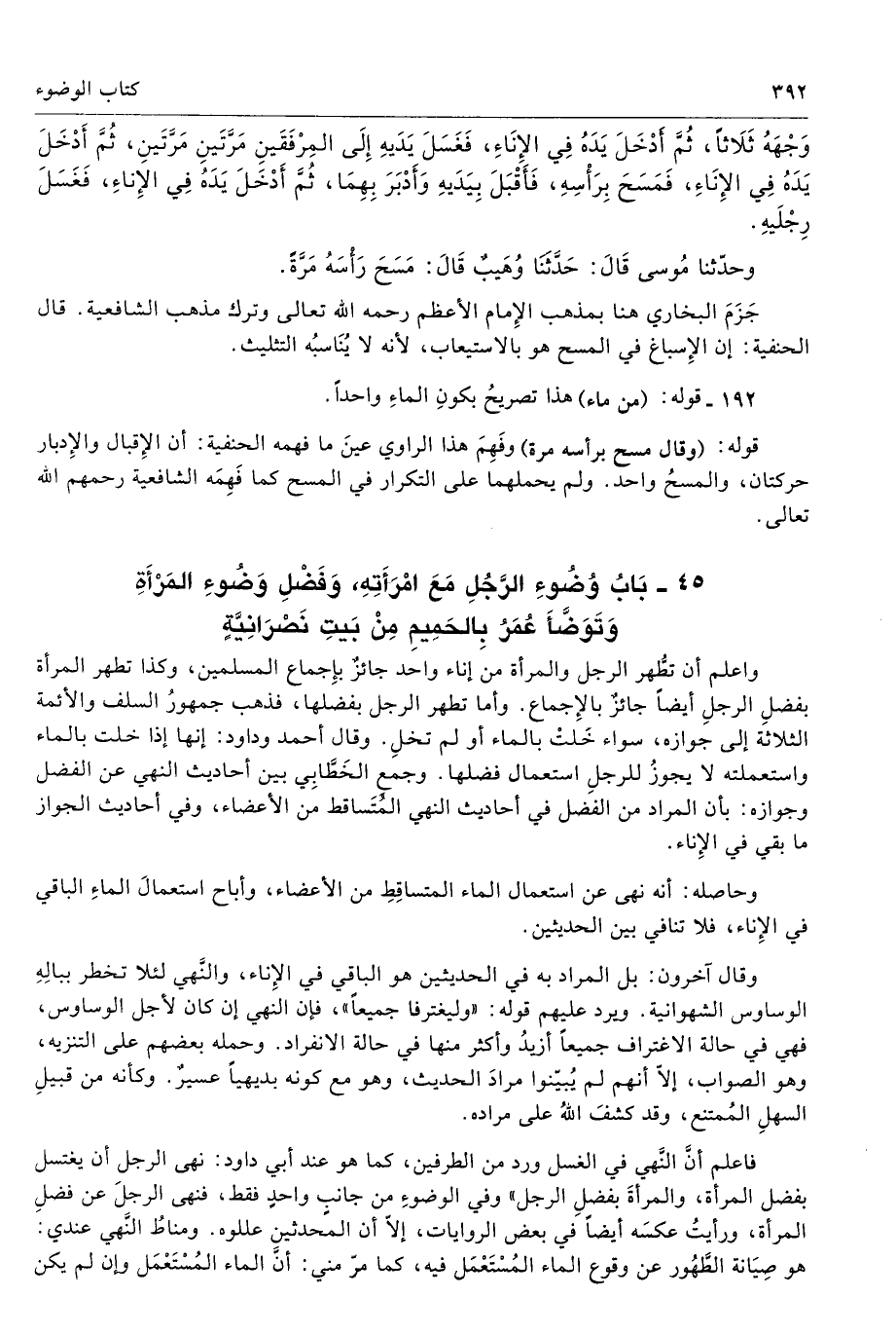 192 - قوله: (من ماء) هذا تصريحُ بكونِ الماءِ واحدًا.