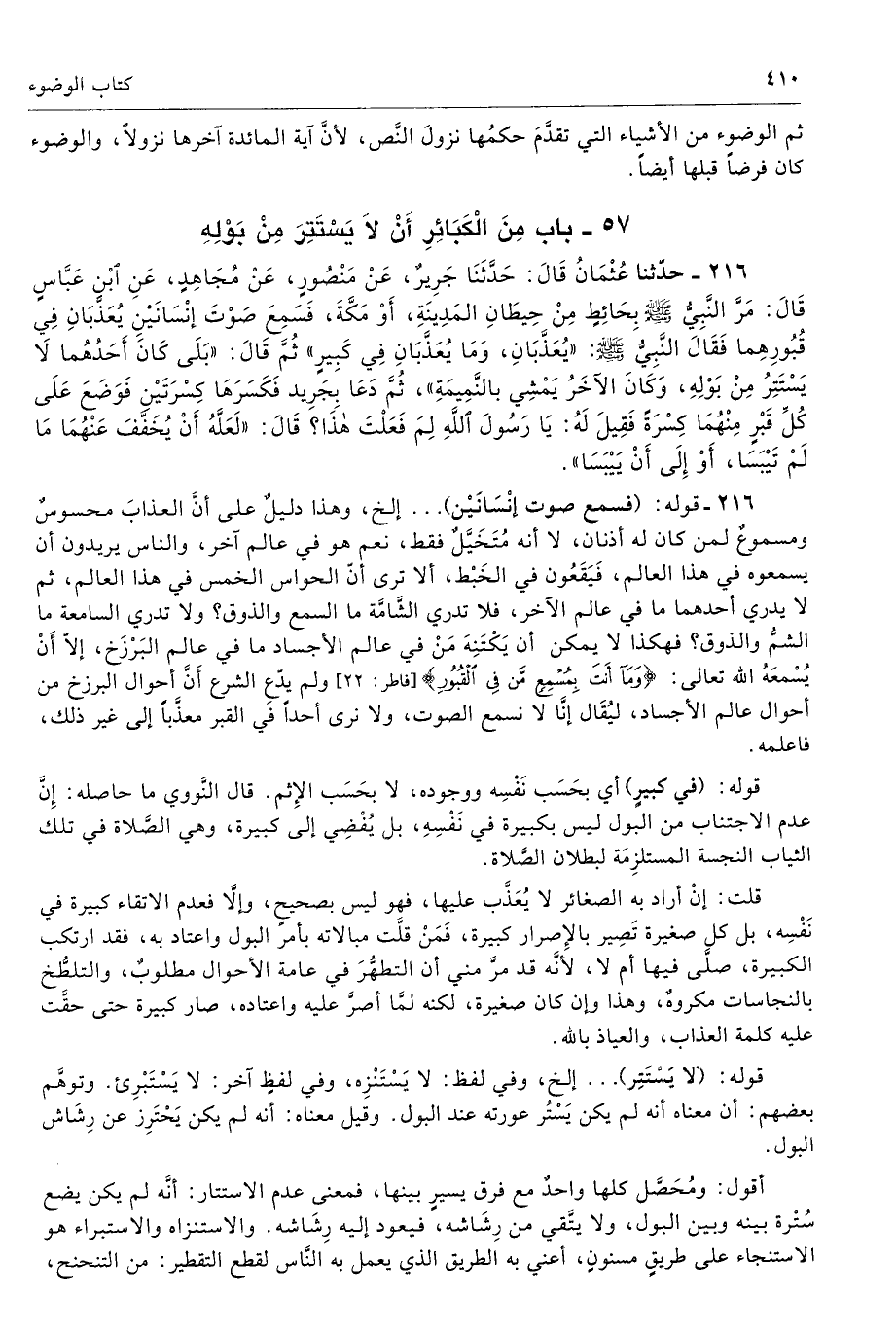 57 - باب مِنَ الْكَبَائِرِ أَنْ لاَ يَسْتَتِرَ مِنْ بَوْلِهِ