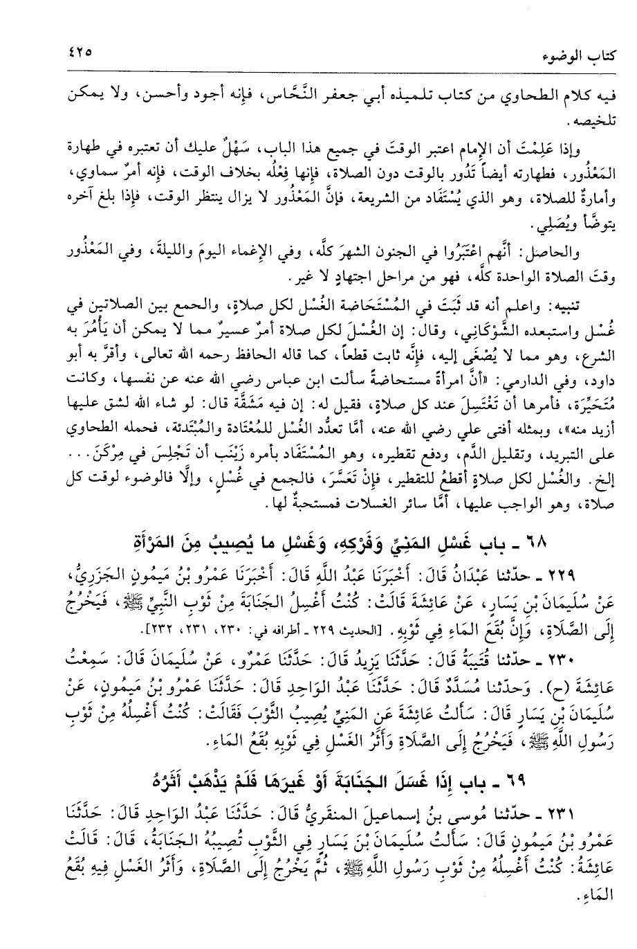 وإذا عَلِمْتَ أن الإِمام اعتبر الوقتَ في حميع هذا الباب، سَهُلٌ عليك أن تَعْتَبَرِه في طهارة المَعْذُور، فطهارته أيضًا تَدُور بالوقت دون الصلاة، فإِنها فِعْلُه بخلاف الوقت، فإِنه أمرٌ سماوي، وأمارةٌ للصلاة، وهو الذي يُسْتَفَاد من الشريعة، فإنَّ المَعَذُور لا يزال ينتظر الوقت، فإِذا بلغ آخره يتوضَّأ ويُصَلِي.