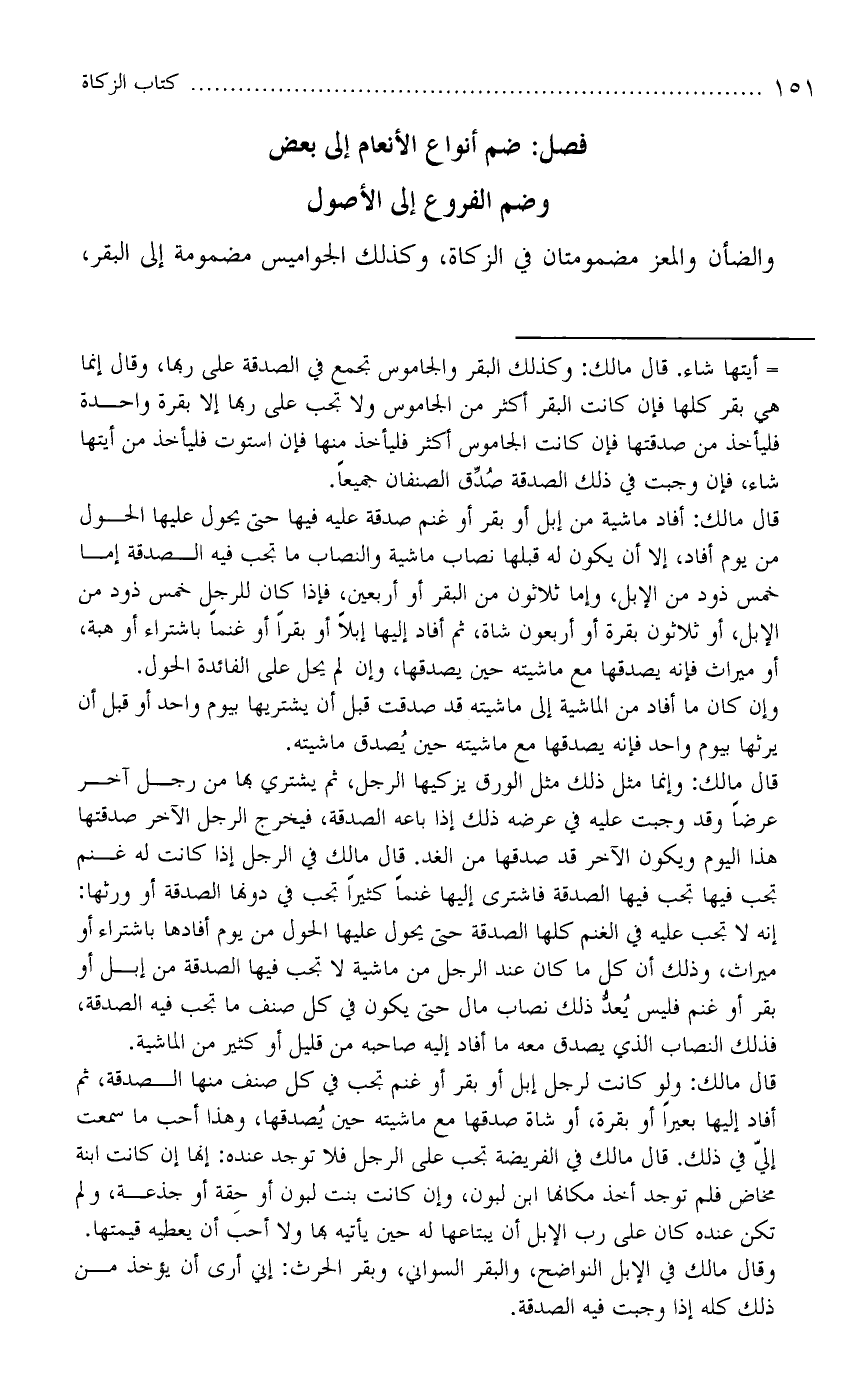 والضأن والمعز مضمومتان في الزكاة، وكذلك الجواميس مضمومة إلى البقر،