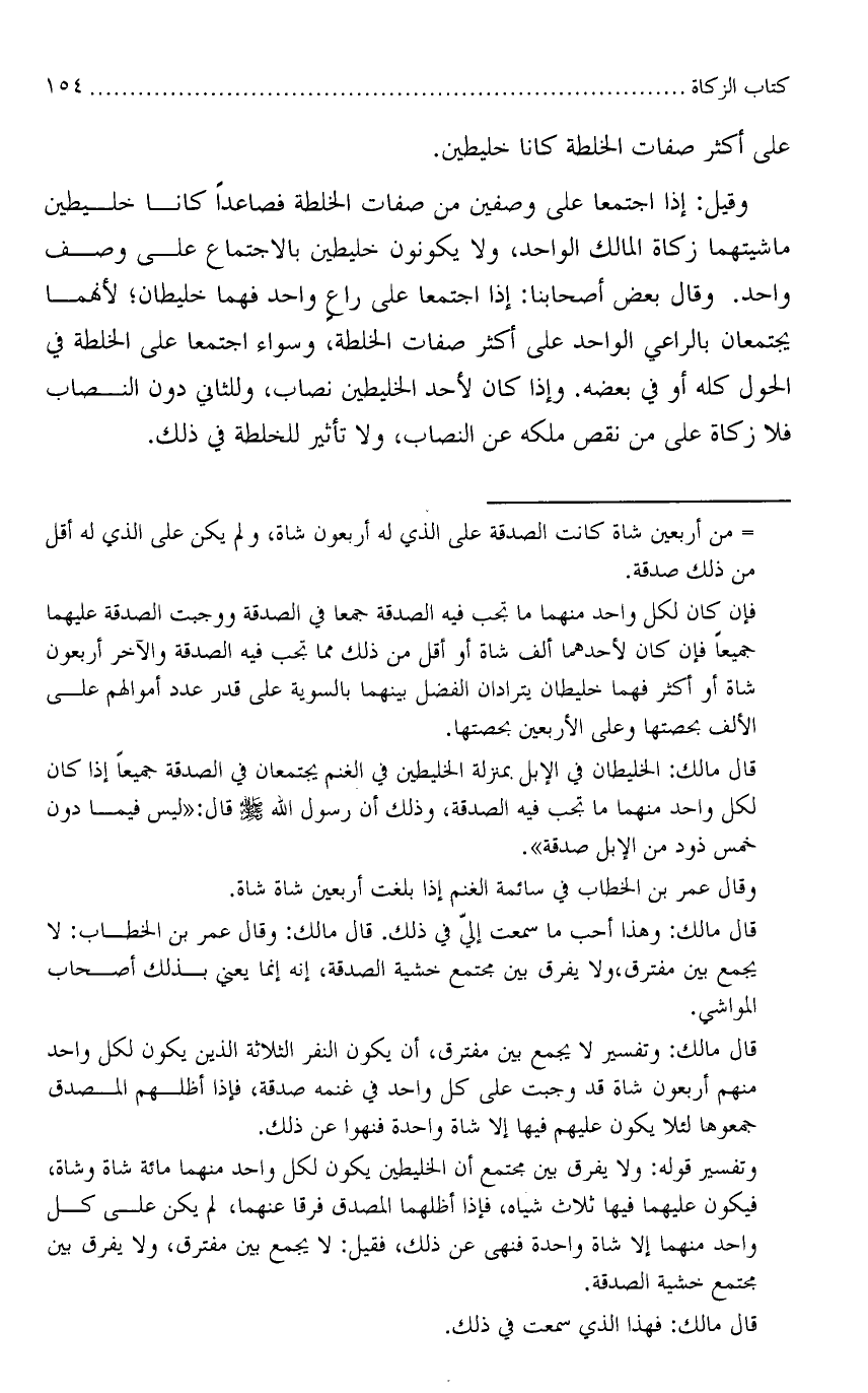 وقيل: إذا اجتمعا على وصين من صفات الخلطة فصاعدًا كانا خليطين ماشيتهما زكاة المالك الواحد، ولا يكونون خليطين بالاجتماع على وصف واحد. وقال بعض أصحابنا: إذا اجتمعا على راعٍ واحد فهما خليطان؛ لأنهما يجتمعان بالراعي الواحد على أكثر صفات الخلطة، وسواء اجتمعا على الخلطة في الحول كله أو في بعضه. وإذا كان لأحد الخليطين نصاب، وللثاني دون النصاب فلا زكاة على من نقص ملكه عن النصاب، ولا تأثير للخلطة في ذلك.