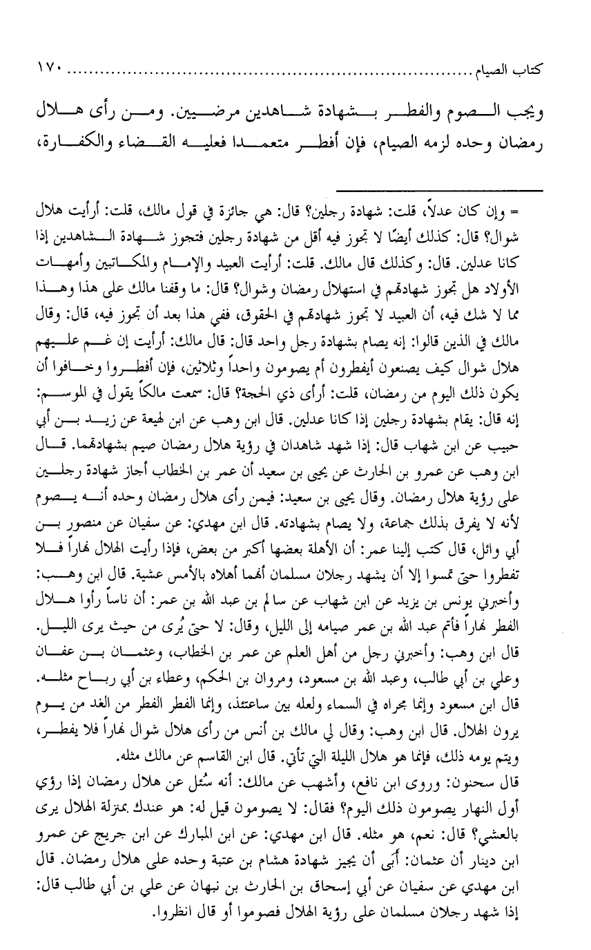 ويجب الصوم والفطر بشهادة شاهدين مرضيين. ومن راى هلال رمضان وحده لزمه الصيام، فإن أفطر متعمدًا فعليه القضاء والكفارة،