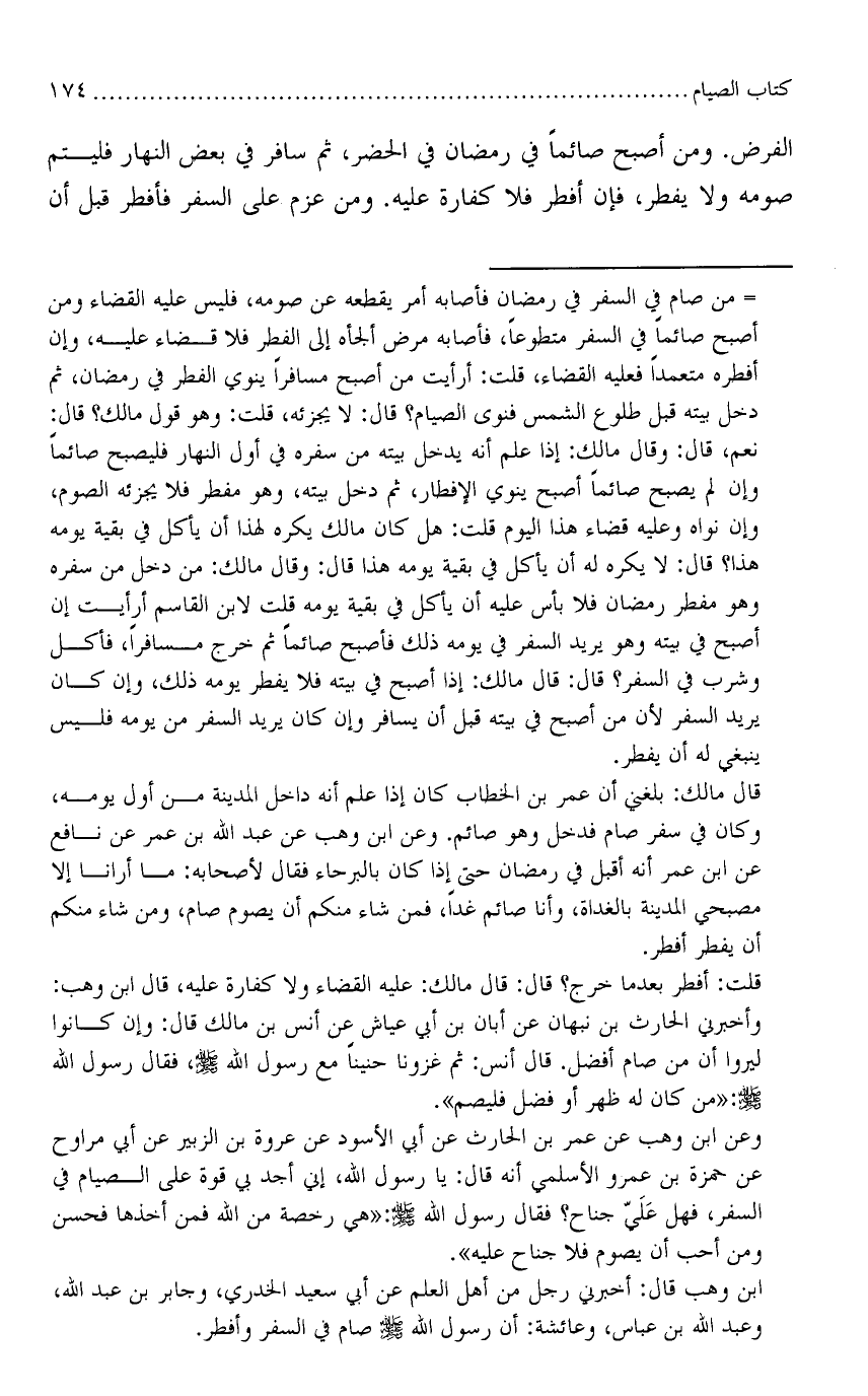 الفرض. ومن أصبح صائمًا في رمضان فيالحضر، ثم سافر في بعض النهار فليتم صومه ولا يفطر، فإن أفطر فلا كفارة عليه. ومن عزم على السفر فأفطر قبل أن