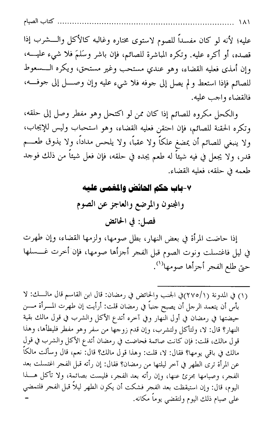 إذا حاضت المرأة في بعض النهار، بطل صومها، ولزمها القضاء، وإن ظهرت في ليل فاغتسلت ونوت الصوم قبل الفجر أجزأها صومها، فإن أخرت غسلهاحتىطلع الفجر أجزأها صومها.