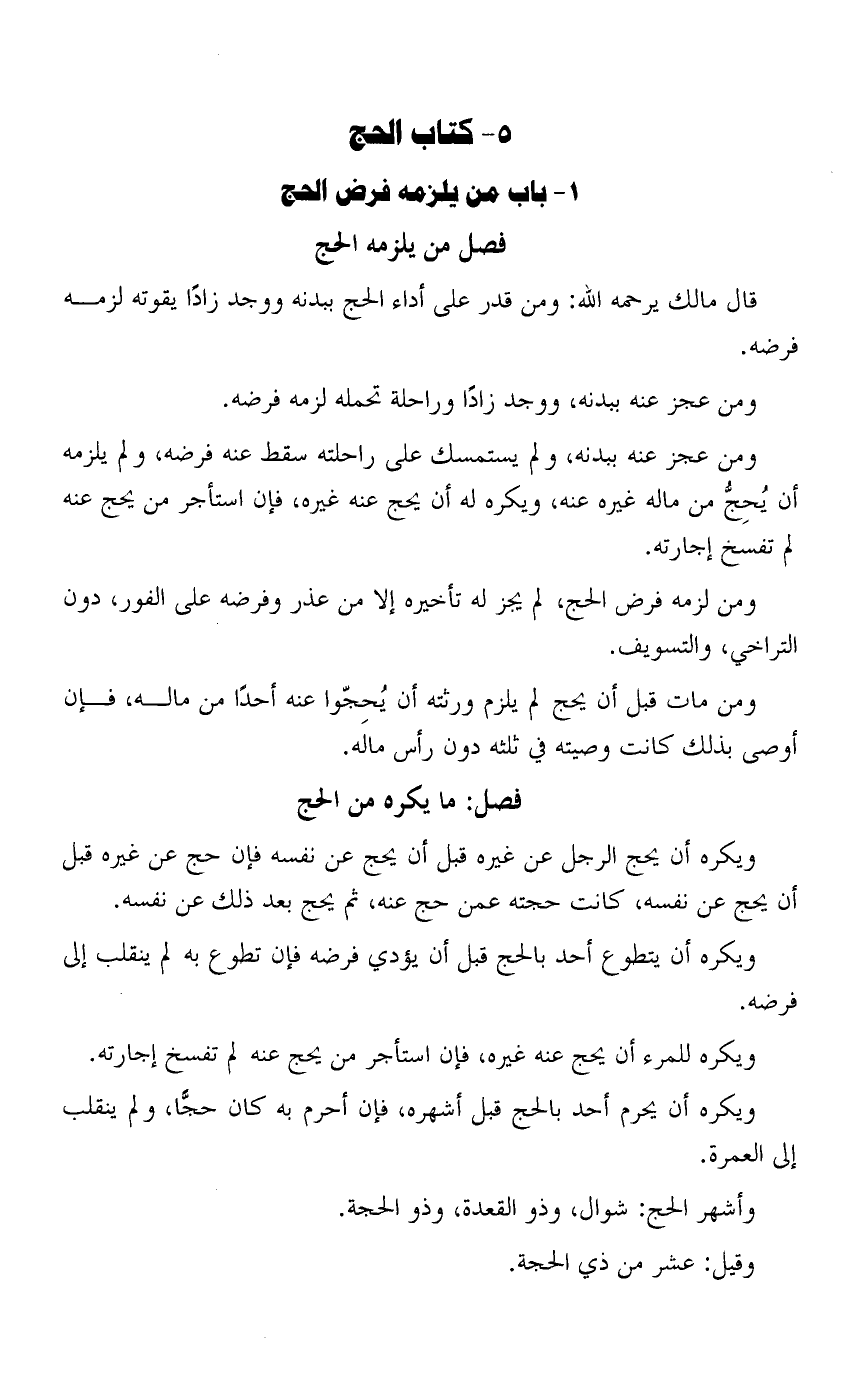 قال مالك يرحمه الله: ومن قدر على أداء الحج ببدنه ووجد زادًا يقوته لزمه فرضه.