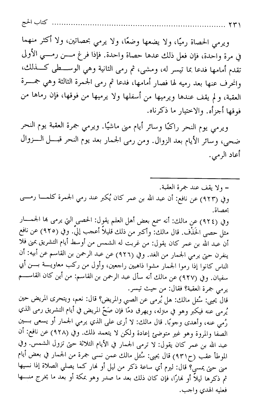 ويرمي الحصارة رميًا، ولا يضعها وضعًا، ولا يرمي بحصاتين، ولا أكثر منهما في مرة واحدة، فإن فعل ذلك عدها حصاة واحدة. فإذا فرغ من رمي الأولى تقدم أمامها فدعا بما تيسر له، ومشى، ثم رمى الثانية وهي الوسطى كذلك، وانحرف عنها بعد رميه لها فصار أمامها، فدعا ثم رمى الجمرة الثالثة وهي جمرة العقبة، ولم يقف عندها ويرميها من أسفلها ولا يرميها من فوقها، فغ، رماها من فوقها أجزأه. والاختيار ما ذكرناه.