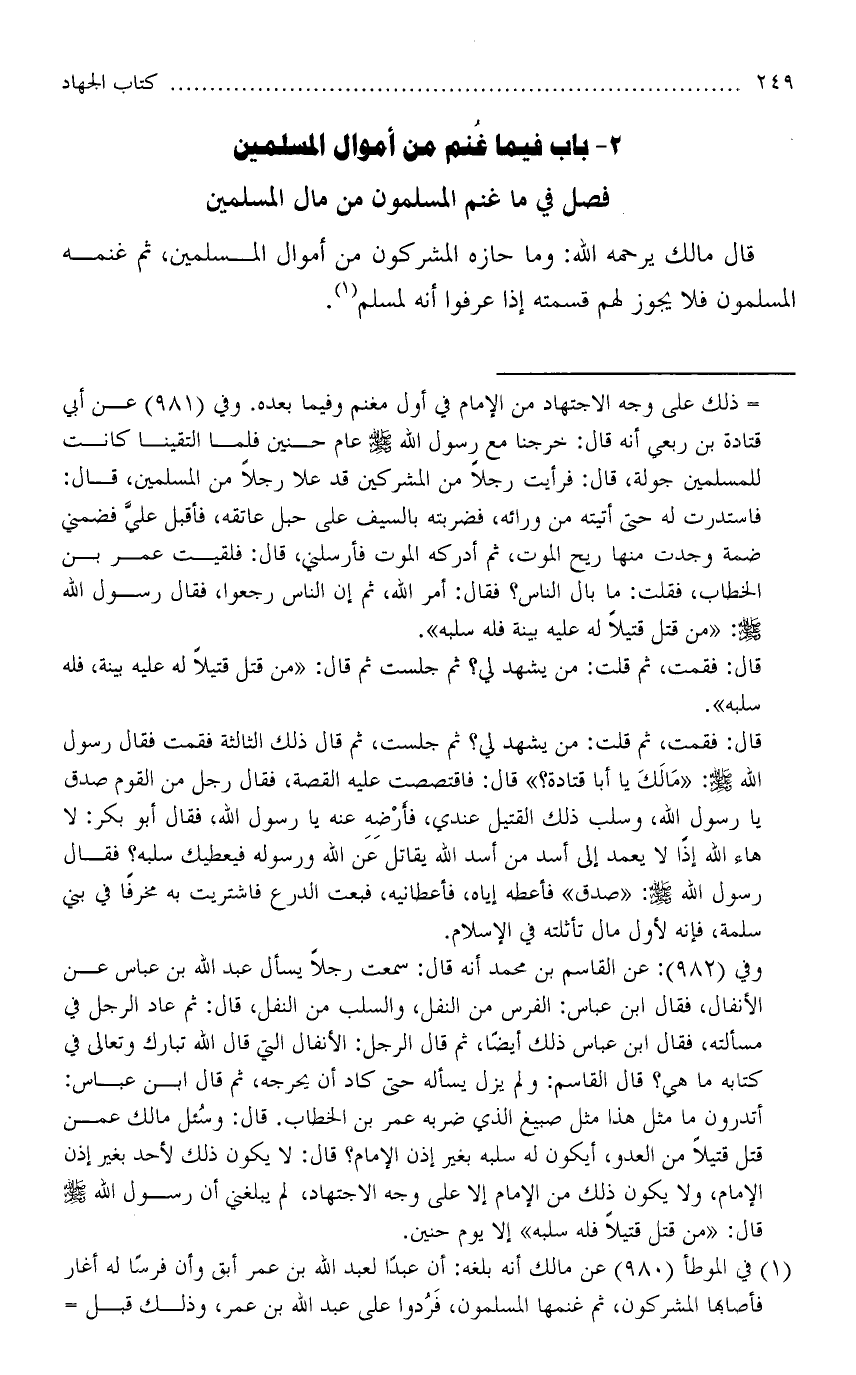 2 - باب فيما غُنم من أموال الملسمين