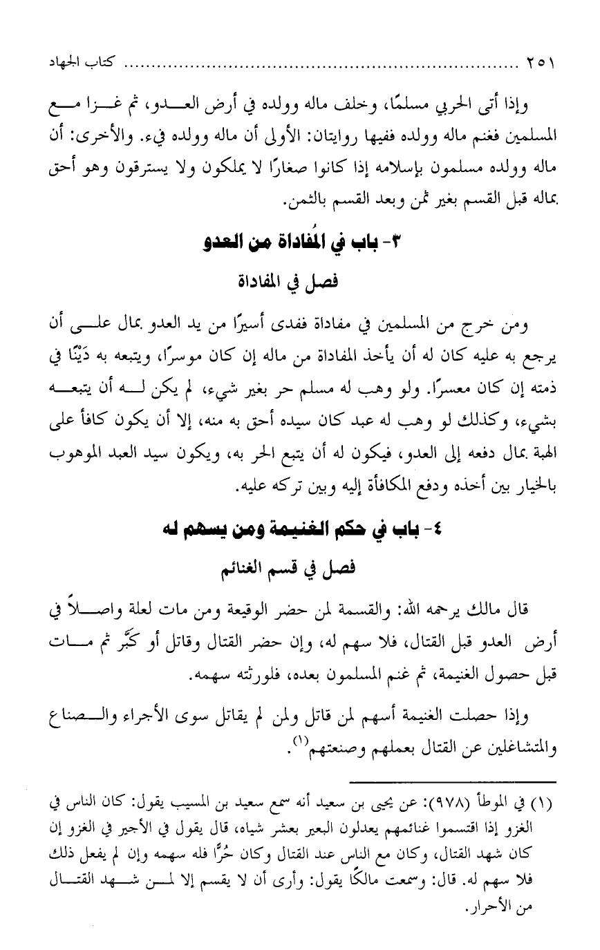 وإذا حصلت الغنيمة أسهم لمن قاتل ولمن لم يقاتل سوى الأجراء والصناع والمتشاغلين عن القتال بعملهم وصنعتهم.
