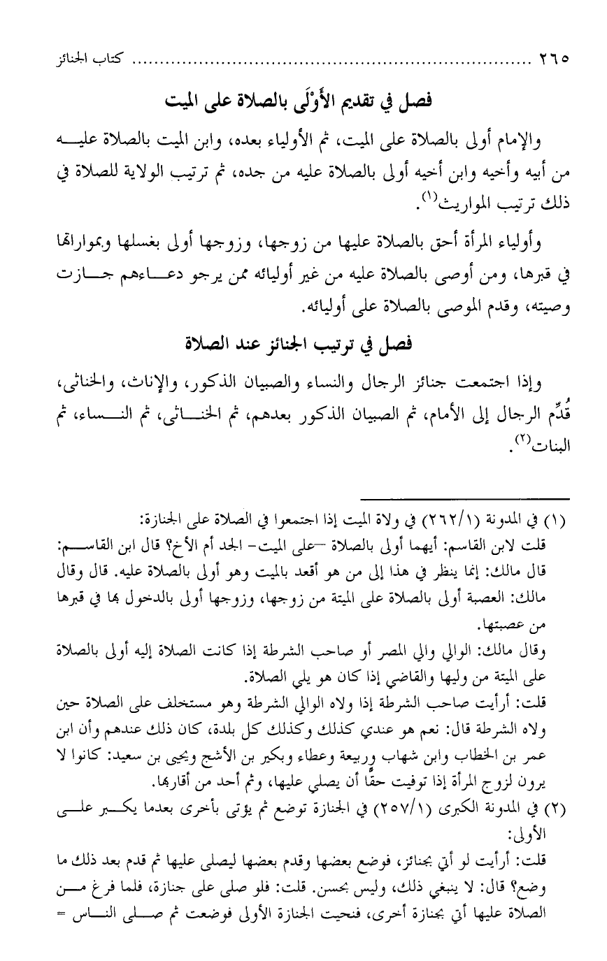 والإمام أولى بالصلاة على الميت، ثم الأولياء بعده، وابن الميت بالصلاة عليه من أبيه وأخيه وابن أخيه أولى بالصلاة عليه من جده، ثم ترتيب الولاية للصلاة في ذلك ترتيب المواريث.