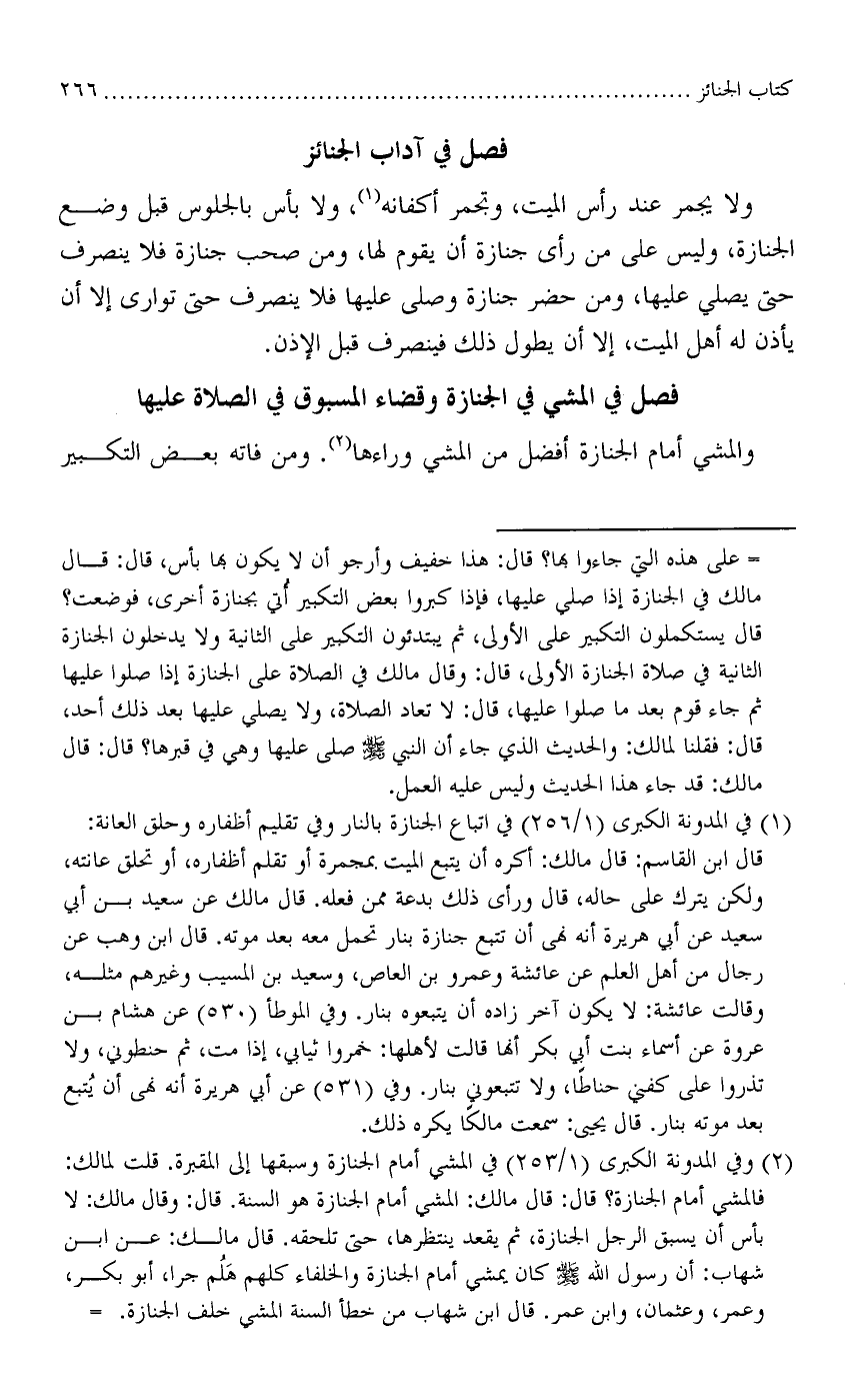 ولا يجمر عند رأس الميت، وتجمر أكفانه، ولا بأس بالجلوس قبل وضع الجنازة، وليس على من رأى جنازة أن يقوم لها، ومن صحب جنازة فلا ينصرف حتى يصلي عليها، ومن حضر جنازة وصلى عليها فلا ينصرف حتى توارى إلا أن يأذن له أهل الميت، إلا أن يطول ذلك فينصرف قبل الإذن.