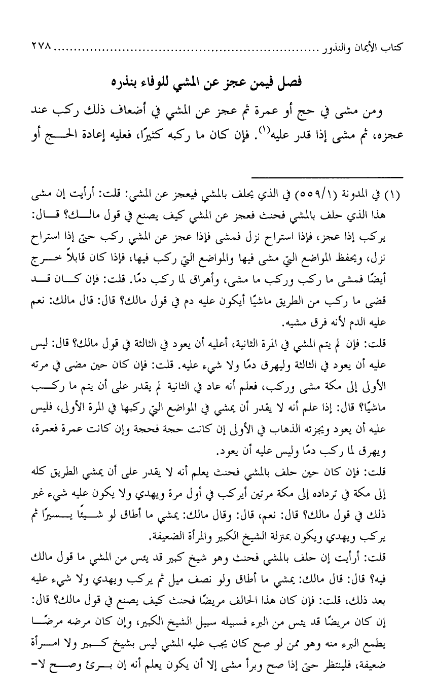 فصل فيمن عجز عن المشي للوفاء بنذره