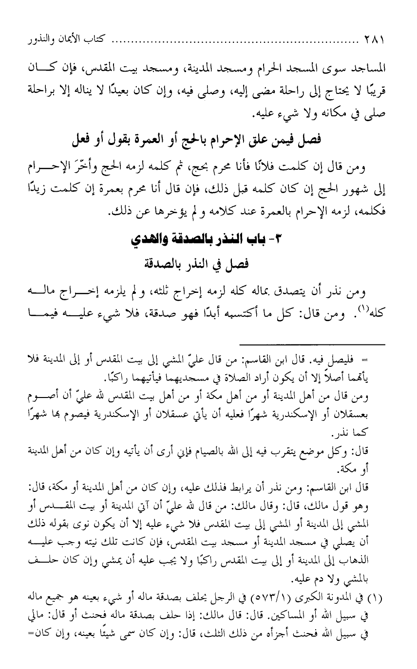 ومن نذر أن يتصدق بماله كله لزمه إخراج ثلثه، ولم يلزمه إخراج ماله كله. ومن قال: كل ما أكتسبه أبدًا فهو صدقة، فلا شيئ عليه فيما
