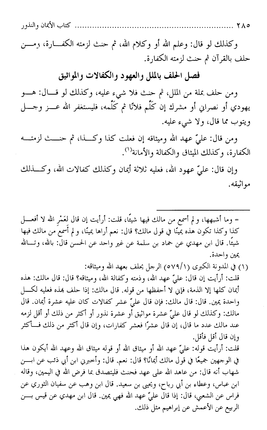 فصل: الحلف بالملل والعهود والكفالات والمواثيق