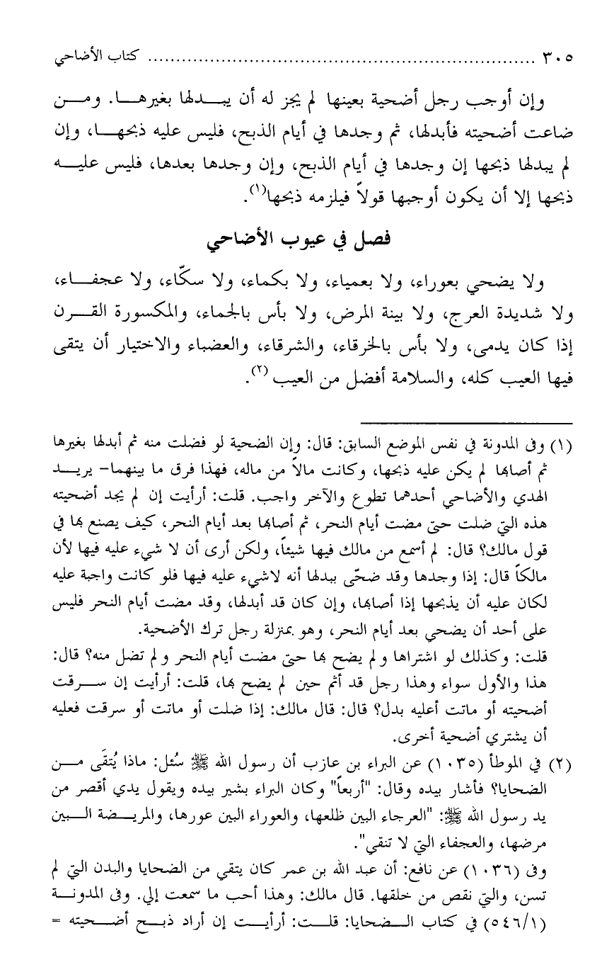 وإن أوجب رجل أضحية بعينها لم يجز له أن يبدلها بغيرها. ومن ضاعت أضحيته فأبدلها، ثم وجدها في أيام الذبح، فليس عليه ذبحها، وإن لم يبدلها ذبحها إن وجدها في أيام الذبح، فليس عليه ذبحها، وإن لم يبدلها ذبحها إن وجدها في أيام الذبح، وإن وجدها بعدها، فيس عليه ذبحها إلا أن يكون أوجبها قولاً فيلزمه ذبحها.