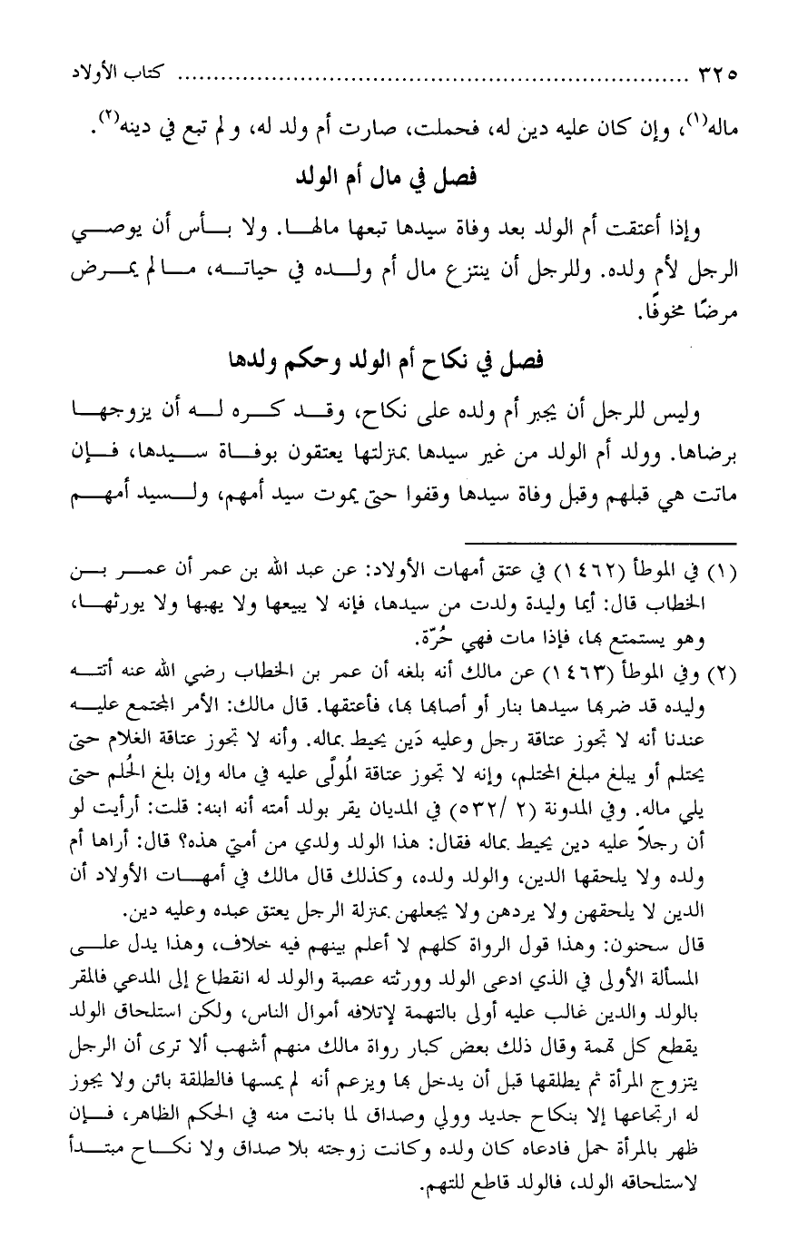وإذا أعتقت أم الولد بعدوفاة سيدها تبعها مالها. بأس أن يوصي الرجل لأم ولده. وللرجل أن ينتزع مال أم ولده في حيته، مال لم يمرض مرضًا مخوفاً.
