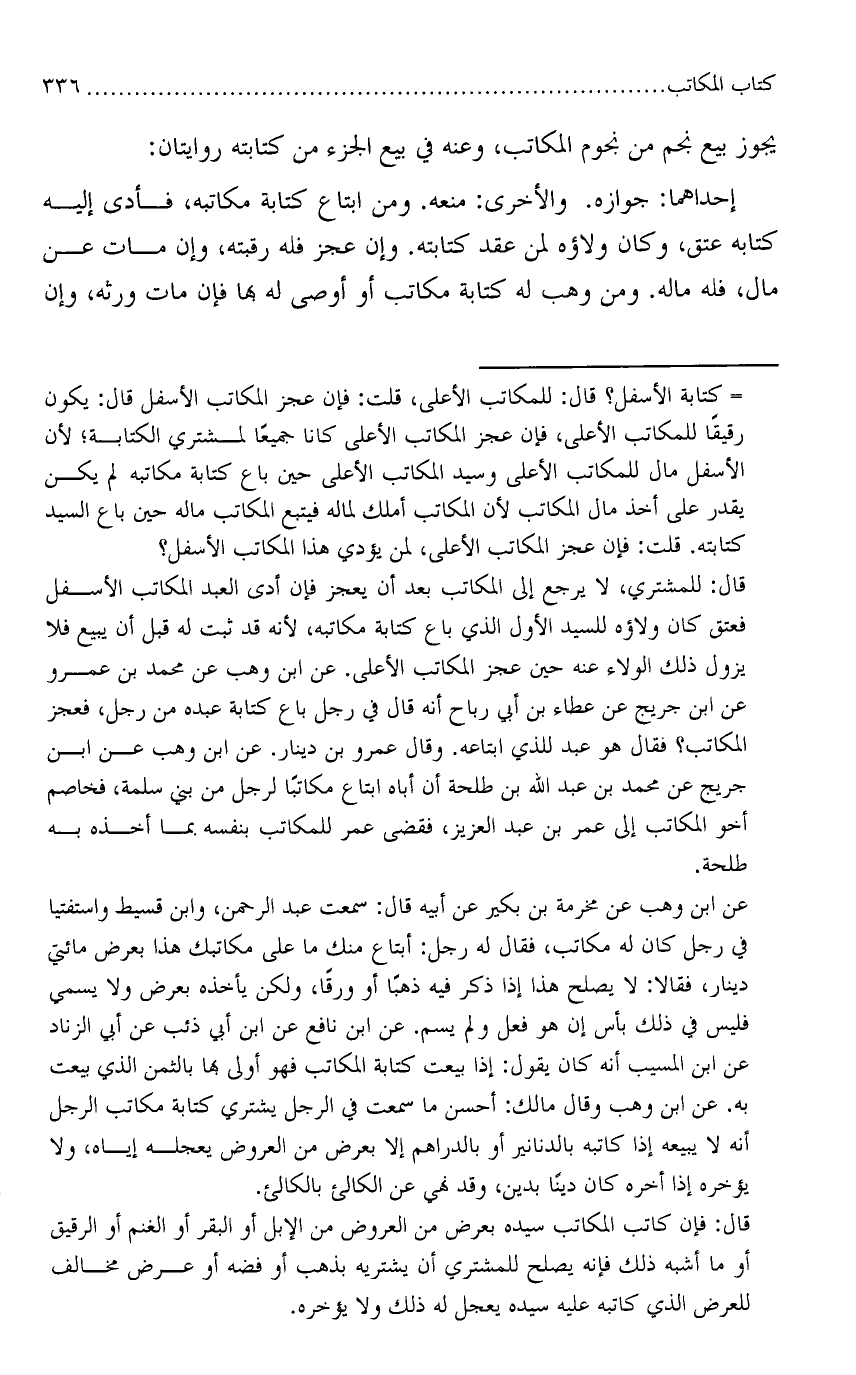 يجوز بيع نجم من نجوم المكاتب، وعنه في بيع الجزء من كتابته روايتان: