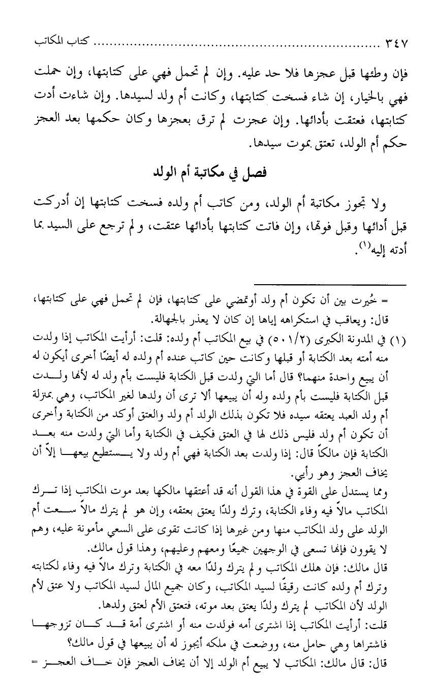 ولا تجوز مكاتبة أم الولد، ومن كاتب أم ولده فسخت كتابتها إن أدركت قبل أدائها وقبل فوتها، وإن فاتت كتابتها بأدائها عتقت، ولم ترجع على السيد بما أدته إليه.
