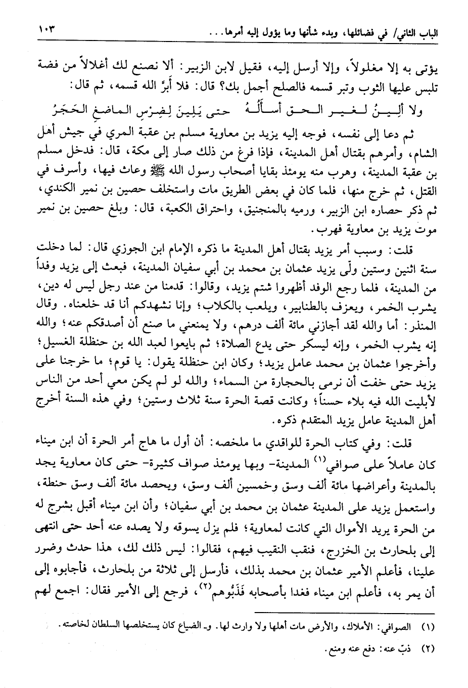 نجد في التوراة أن في حرة شرقي المدينة مقتلة تضيء وجوههم يوم القيامة صنعا» وروى أيضا أنه ذكر عند ابن عباس قتلى الحرة، فقال ابن عباس: يرحمهم الله، قال رسول الله صلّى الله عليه وسلّم «يقتل بحرة زهرة خيار أمتي» .