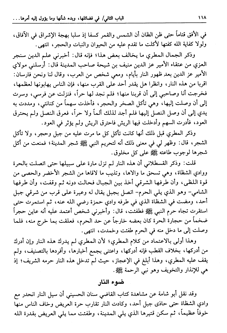 ذلك ردم صار كالجبل العظيم، فانتهت النار إلى قرب المدينة، ومع ذلك فكان يأتي المدينة نسيم بارد، وشوهد لهذه النار غليان كغليان البحر، وقال لي بعض أصحابنا: