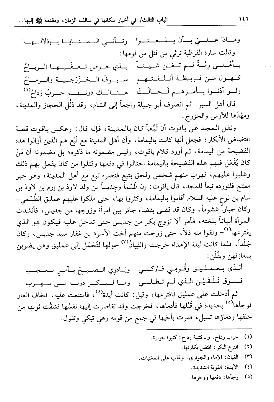 ثم ذكر أبياتا نسبها إلى أبي يزيد بن سالم أحد بني سالم بن عوف بن الخزرج مدح بها أبا جبيلة ونسبها ابن زبالة للرمق فإنه قال: إن الأوس والخزرج قالوا لأبي جبيلة لما قدم لنصرهم: إن علم القوم ما تريد تحصنوا في آطامهم فلم تقدر عليهم، ولكن ادعهم للقائك وتلطفهم حتى يأمنوك ويطمئنوا فتستمكن منهم، فصنع لهم طعاما وأرسل إلى وجوههم ورؤسائهم، فلم يبق من وجوههم أحد إلا أتاه، وجعل الرجل منهم يأتي بحامته وحشمه «2» رجاء أن يحبوهم، وكان قد بنى لهم حيّزا وجعل فيه قوما فأمرهم أن يقتلوا من دخل عليهم منهم، ففعلوا حتى أتوا على وجوههم ورؤسائهم، فعزت الأوس والخزرج بالمدينة، واتخذوا الديار والأموال والآطام، فقال الرمق يثني على أبي جبيلة: