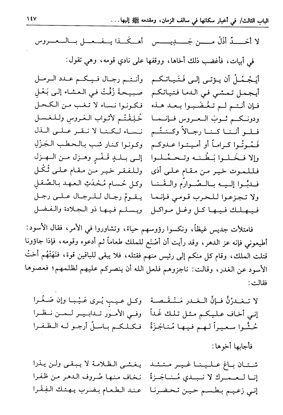 وذكر ابن قتيبة في معارفه تبّع بن حسان، قال: وهو تبع الأصغر آخر التبابعة، وذكر أنه صار إلى الشام وملوكها غسان فأطاعته، قال: وصار إلى ابن أخيه الحارث وهو بالمستقر من ناحية هجر فأتاه قوم كانوا وقعوا إلى يثرب ممن خرج مع عمرو مزيقياء وحالفوا اليهود بيثرب- أي وهم الأنصار- فشكوا اليهود، وذكروا سوء مجاورتهم، ونقضهم الشرط الذي شرطوه لهم عند نزولهم، ومتّوا «1» إليه بالرحم، فأحفظه ذلك «2» ، فصار إلى يثرب ونزل في سفح أحد، وبعث إلى اليهود، فقتل منهم ثلاث مائة وخمسين رجلا صبرا، وأراد خرابها، فقام إليه رجل من اليهود قد أتت عليه مائتان وخمسون سنة فقال: أيها الملك، مثلك لا يقتل على الغضب، وأمرك أعظم من أن يطير بك برق أو يسرع بك لجاج، فإنك لا تستطيع أن تخرب هذه القرية، قال: ولم؟ قال: لأنها مهاجر نبي من ولد إسماعيل يخرج من عند هذه البنية، يعني البيت الحرام، فكف تبع ومضى ومعه هذا اليهودي ورجل آخر من اليهود عالم، وهما الحبران، فأتى مكة، وكسا البيت ثم رجع إلى اليمن ومعه الحبران وقد دان بدينهما وآمن بموسى صلّى الله عليه وسلّم اه.