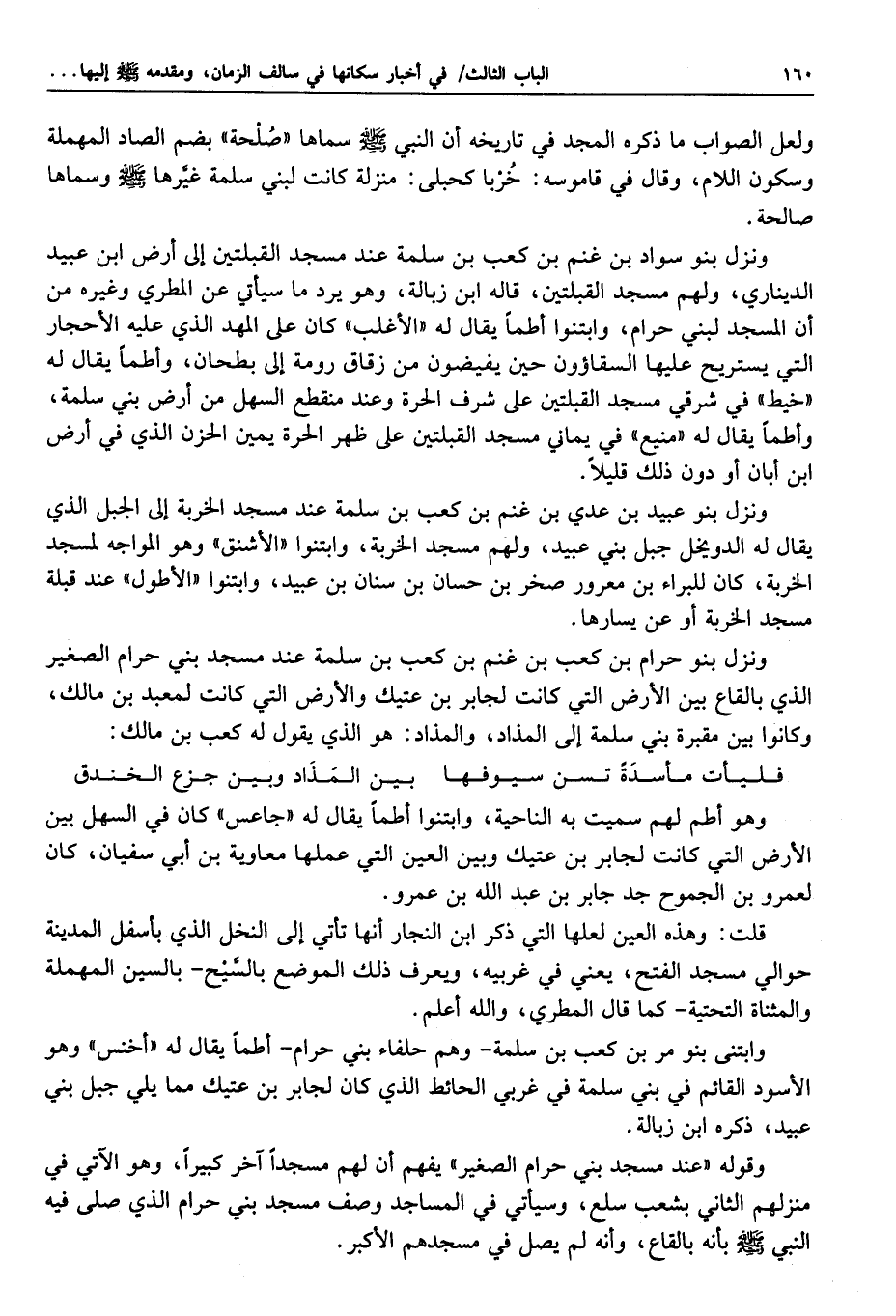 الخزرج وهما التوأمان فسكنا السنح، وهذا هو المراد بقول ابن حزم: كان سكنى بني الحارث بالسّنح على ميل من مسجد الرسول صلّى الله عليه وسلّم انتهى.