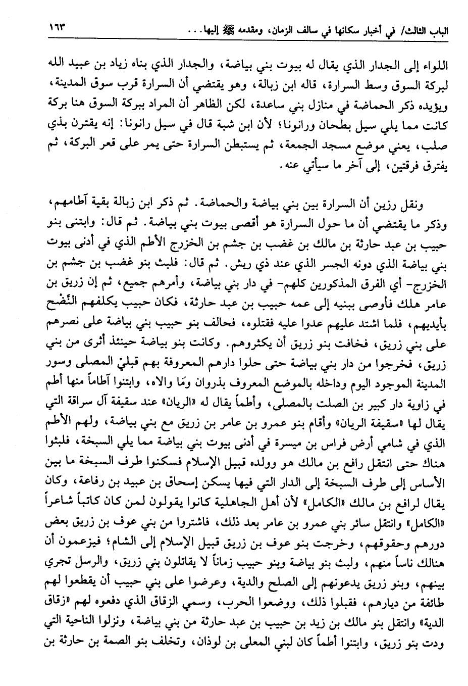 وروى ابن زبالة ويحيى من طريقه عن جابر بن عبد الله قال: كان السيل يحول بين بني حرام وبين مسجد رسول الله صلّى الله عليه وسلّم فنقلهم عمر بن الخطاب إلى الشعب، وكلهم قوما