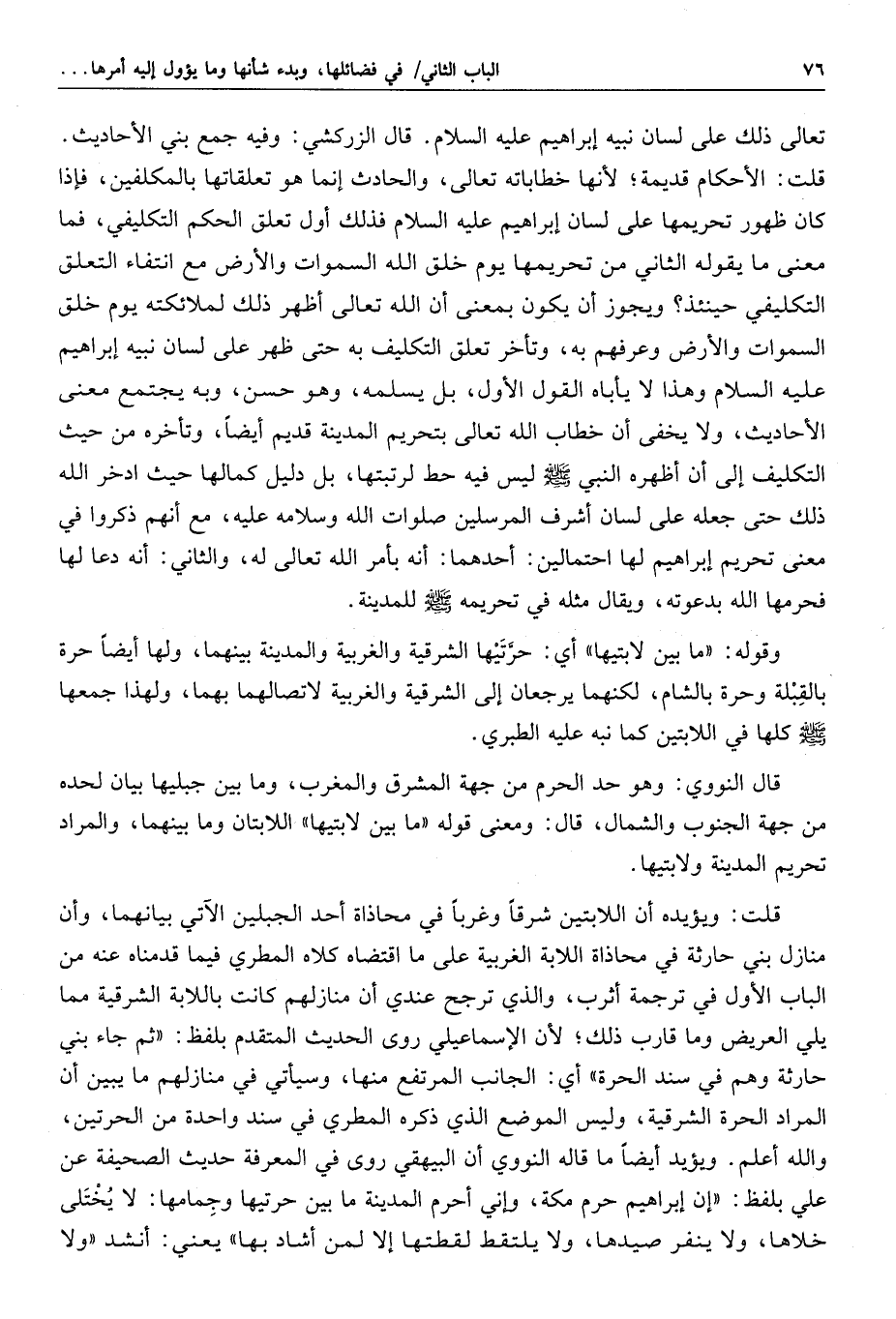 التسعون: قوله صلّى الله عليه وسلّم في أحاديث تحريمها «ولا يحمل فيها سلاح لقتال» .