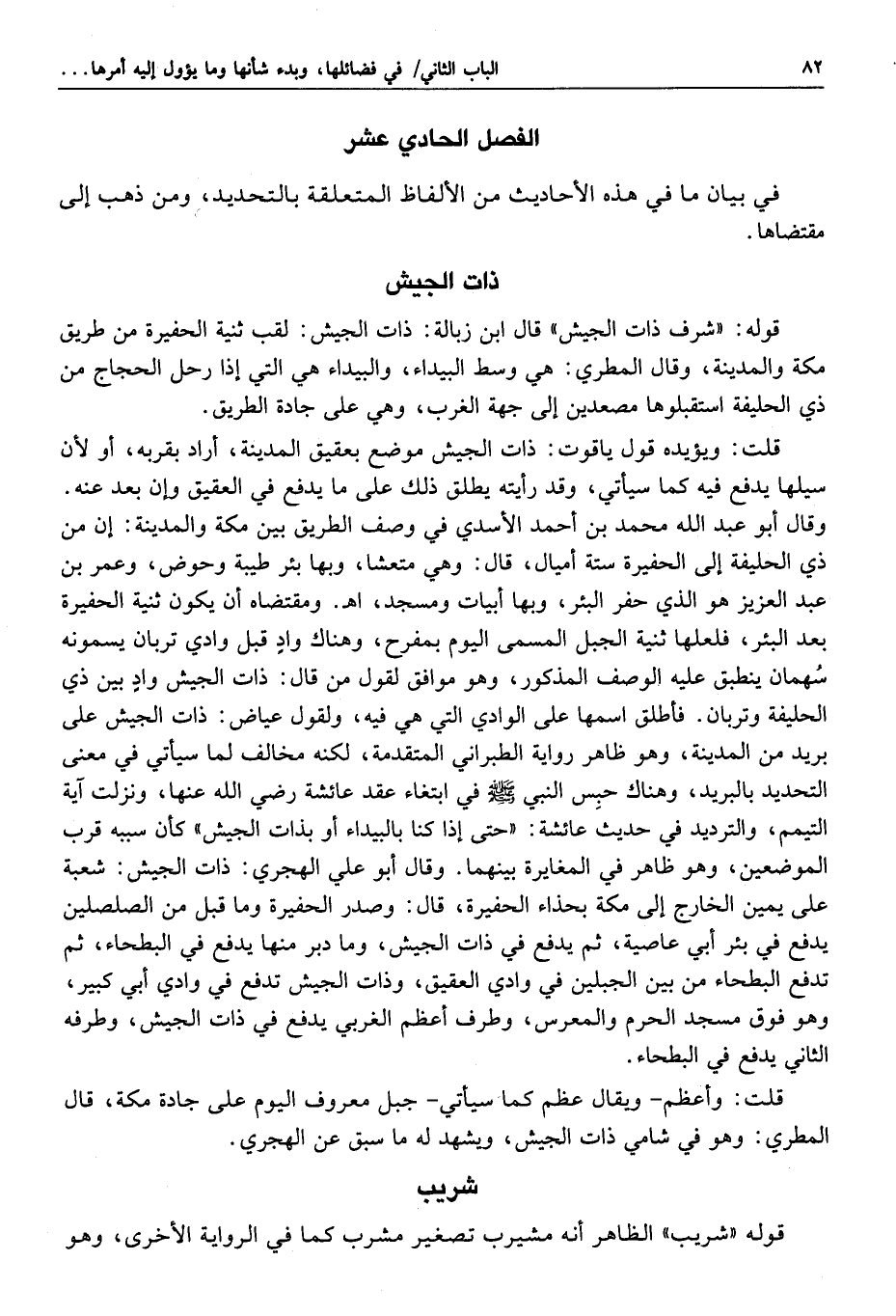 الفصل العاشر في أحاديث تقتضي زيادة الحرم على ذلك التحديد، وأنه مقدر ببريد