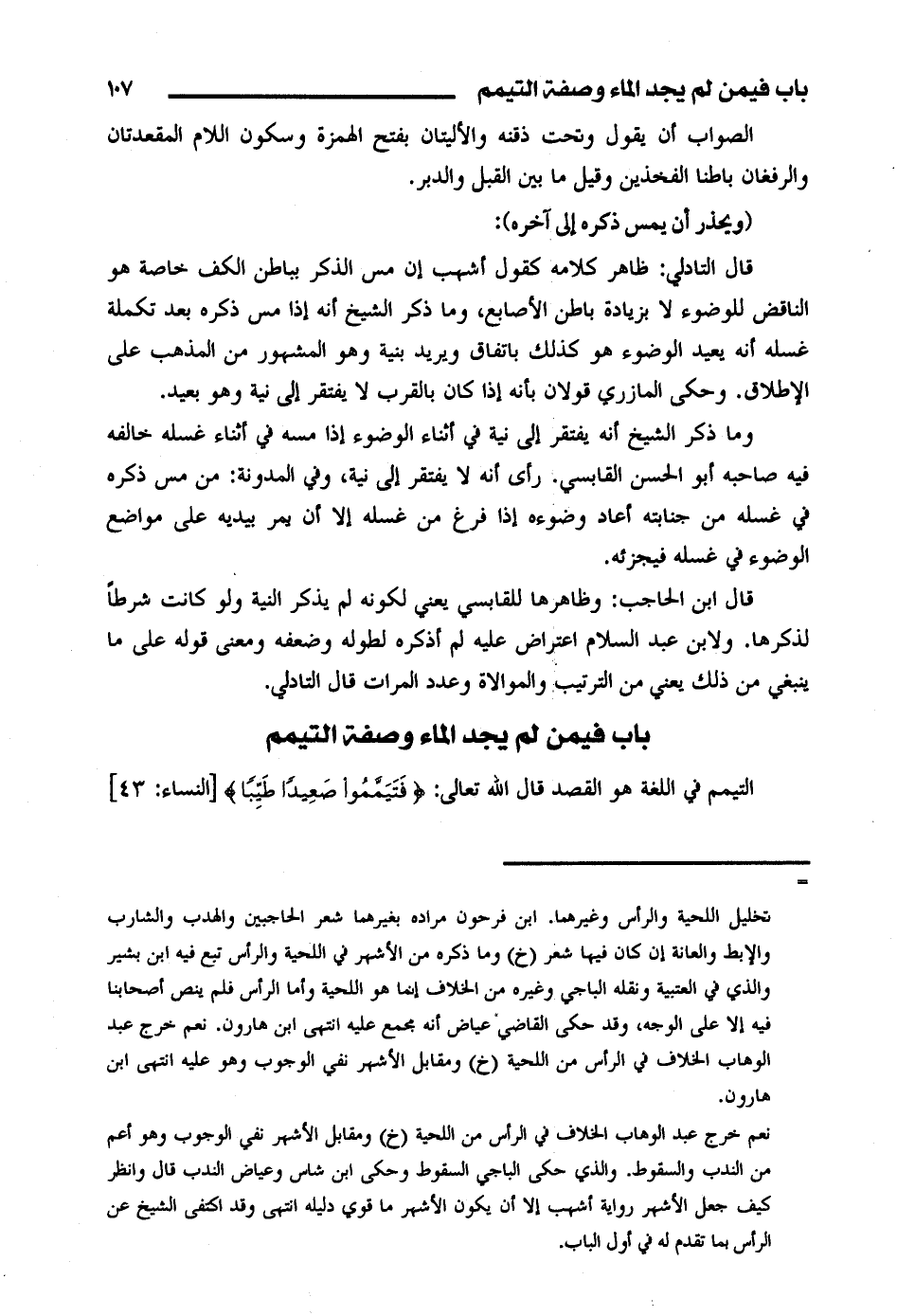 قال ابن الحاجب: وظاهرها للقابسي يعني لكونه لم يذكر النية ولو كانت شرطا لذكرها. ولابن عبدالسلام اعتراض عليه لم أذكره لطوله وضعفه ومعنى قوله على ما ينبغي من ذلك يعني من الترتيب والموالاة وعدد المرات قال التادلي.