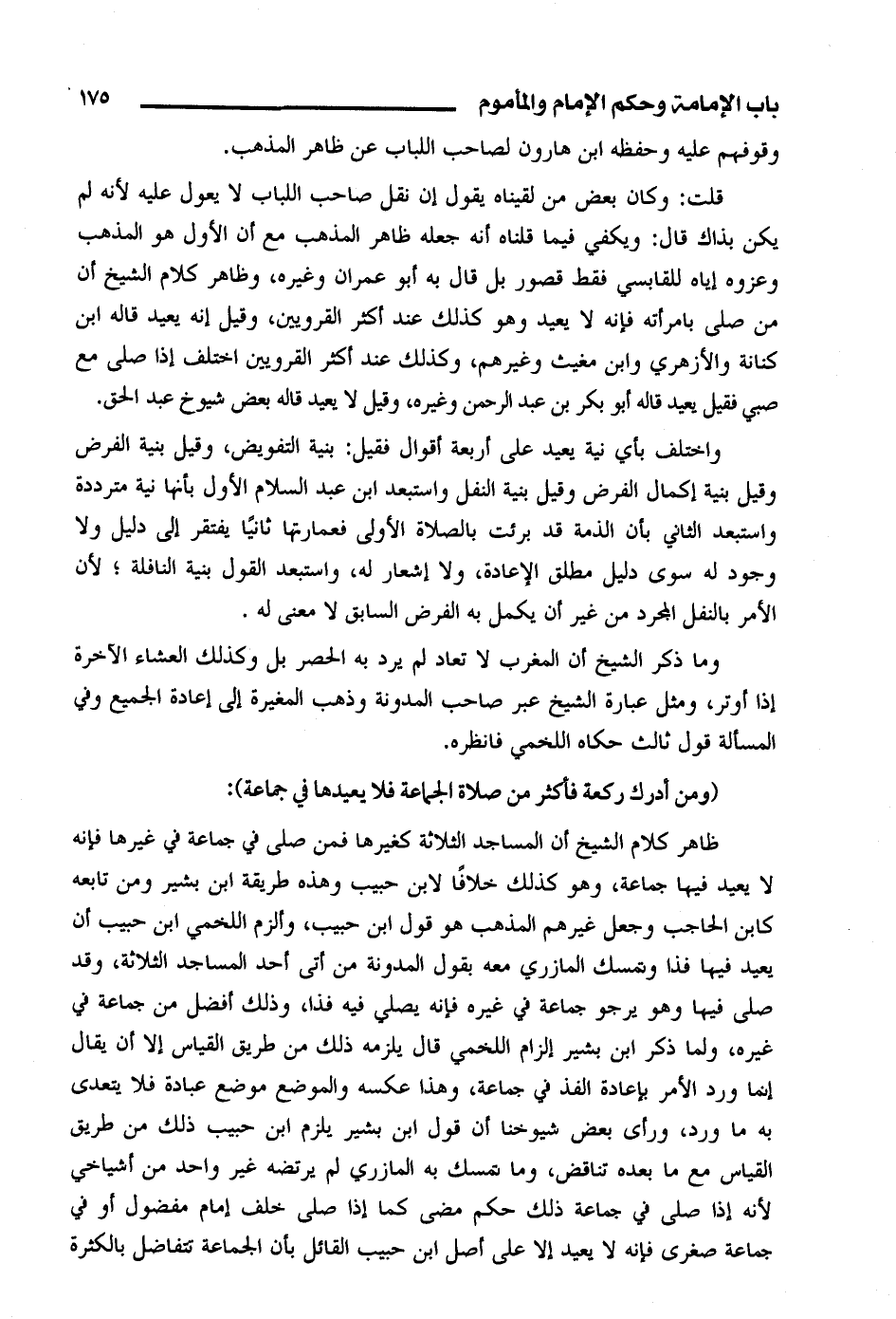 قلت: وكان بعض من لقيناه يقول إن نقل صاحب اللباب لا يعول عليه لأنه لم يكن بذاك قال: ويكفي فيما قلناه أنه جعله ظاهر المذهب مع أن الأول هو المذهب وعزوه إياه للقابسي فقط قصور بل قال به أبو عمران وغيره، وظاهر كلام الشيخ أن من صلى بامرأته فإنه لا يعيد وهو كذلك عند أكثر القرويين، وقيل إنه يعيد قاله ابن كنانة والأزهري وابن مغيث وغيرهم، وكذلك عند أكثر القرويين اختلف إذا صلى مع صبي فقيل يعيد قاله أبو بكر بن عبد الرحمن وغيره، وقيل لا يعيد قاله بعض شيوخ عبد الحق.