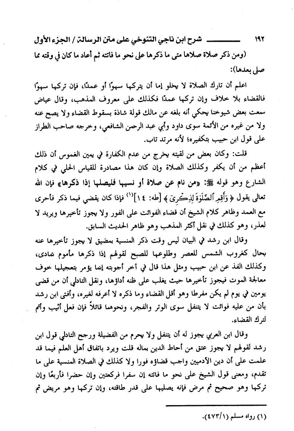 كتاب شرح ابن ناجي التنوخي على متن الرسالة (اسم الجزء: 1)