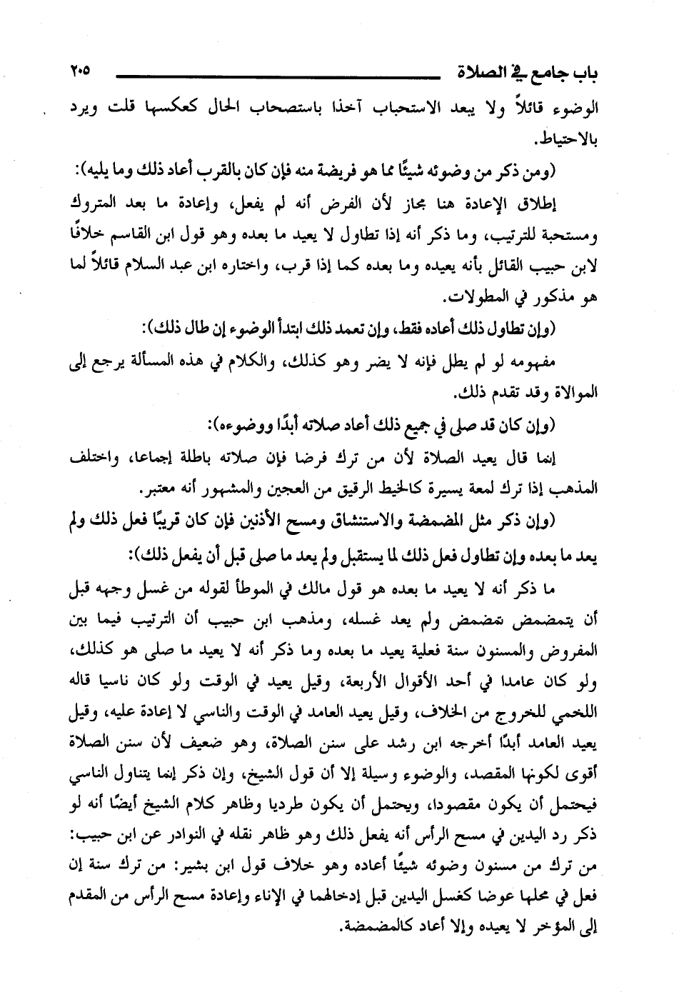 إطلاق الإعادة هنا مجاز لأن الفرض أنه لم يفعل، وإعادة ما بعد المتروك ومستحبة للترتيب، وما ذكر أنه إذا تطاول لا يعيد ما بعده وهو قول ابن القاسم خلافا لابن حبيب القائل بأنه يعيده وما بعده كما إذا قرب، واختاره ابن عبد السلام قائلا لما هو مذكور في المطولات.