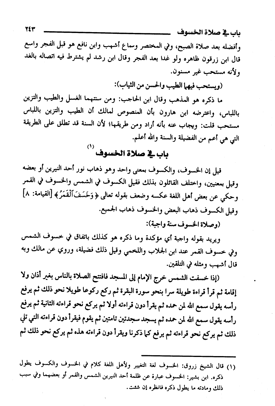 ويريد بقوله واجبة أي مؤكدة وما ذكره هو كذلك باتفاق في خسوف الشمس وفي خسوف القمر عن ابن الجلاب واللخمي وقيل ذلك فضيلة، وروي عن مالك وبه قال أشهب ومثله في التلقين.