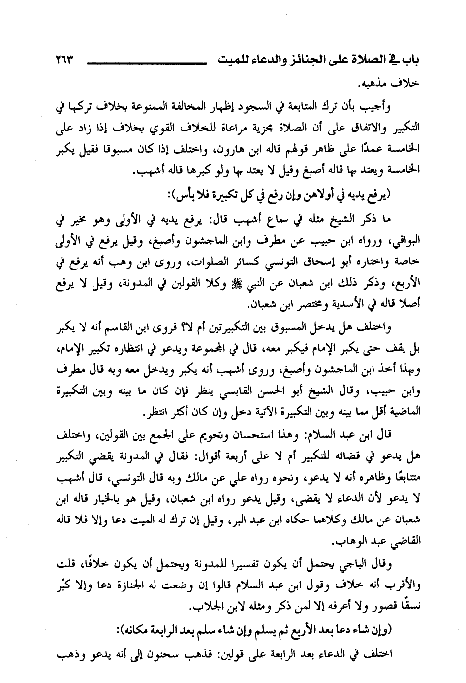 وقال الباجي يحتمل أن يكون تفسيرا للمدونة ويحتمل أن يكون خلافا، قلت والأقرب أنه خلاف وقول ابن عبد السلام قالوا إن وضعت له الجنازة دعا وإلا كبر نسقا قصور ولا أعرفه إلا لمن ذكر ومثله لابن الجلاب.