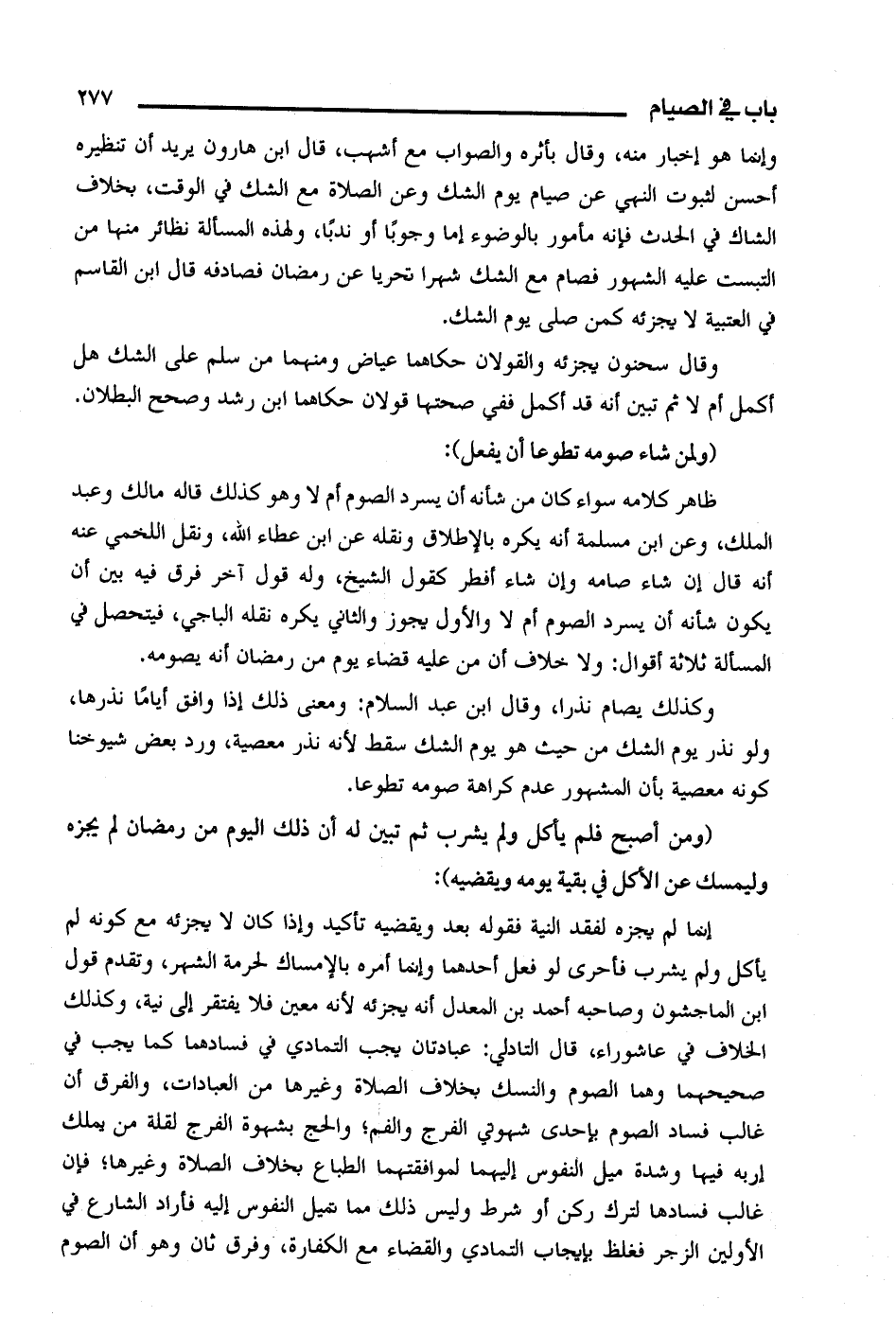 وإنما هو إخبار منه، وقال بأثره والصواب مع أشهب، قال ابن هارون يريد أن تنظيره أحسن لثبوت النهي عن صيام يوم الشك وعن الصلاة مع الشك في الوقت، بخلاف الشاك في الحدث فإنه مأمور بالوضوء إما وجوبا أو ندبا، ولهذه المسألة نظائر منها من التبست عليه الشهور فصام مع الشك شهرا تحريا عن رمضان فصادفه قال ابن القاسم في العتبية لا يحزئه كمن صلى يوم الشك.