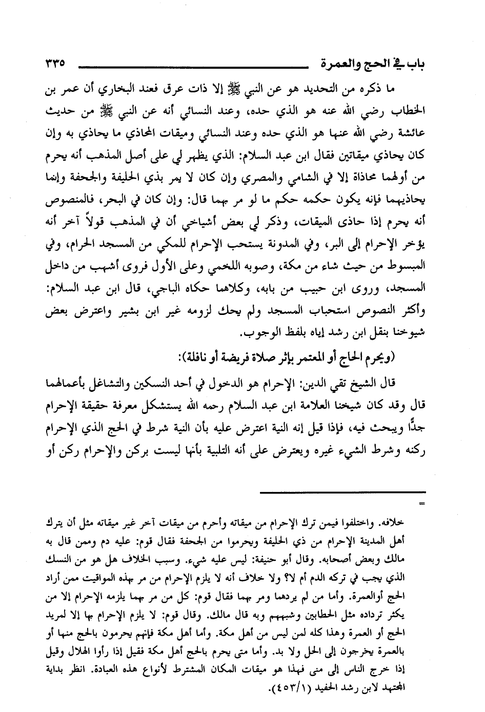 قال الشيخ تقي الدين: الإحرام هو الدخول في أحد النسكين والتشاغل بأعمالهما قال وقد كان شيخنا العلامة ابن عبد السلام رحمه الله يستشكل معرفة حقيقة الإحرام جدا ويبحث فيه، فإذا قيل أنه النية اعترض عليه بأن النية شرط في الحج الذي الإحرام ركنه وشرط الشيء غيره ويعترض على أنه التلبية بأنها ليست بركن والإحرام ركن أو