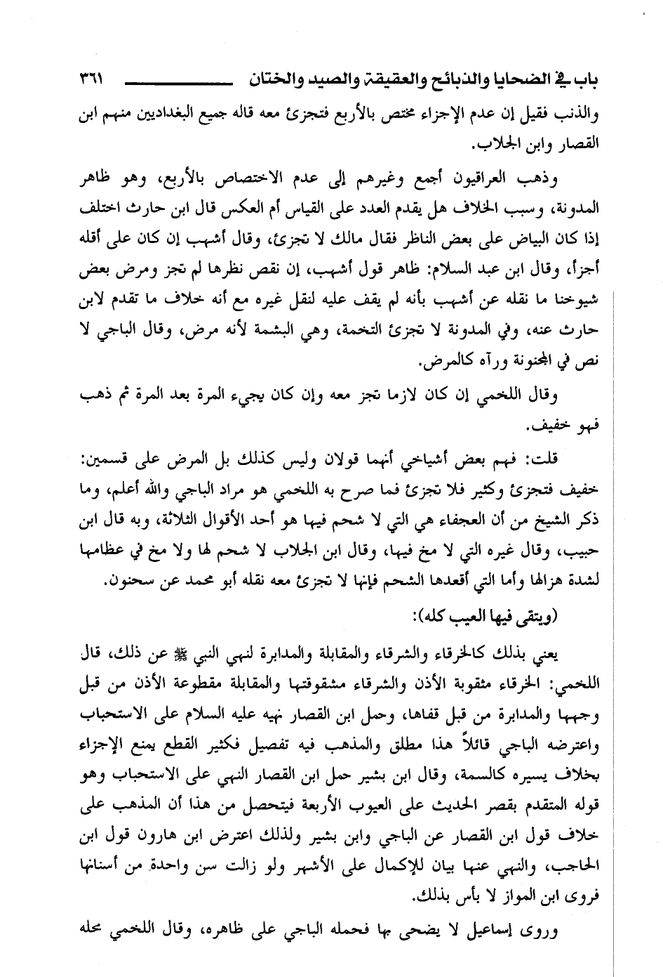 قلت: فهم بعض أشياخي أنهما قولان وليس كذلك بل المرض على قسمين: خفيف فتجزئ وكثير فلا تجزئ فما صرح به اللخمي هو مراد الباجي والله أعلم، وما ذكر الشيخ من أن العجفاء هي التي لا شحم فيها هو أحد الأقوال الثلاثة، وبه قال ابن حبيب، وقال غيره التي لا مخ فيها، وقال ابن الجلاب لا شحم لها ولا مخ في عظامها لشدة هزالها وأما التي أقعدها الشحم فإنها لا تجزئ معه نقله أبو محمد عن سحنون.