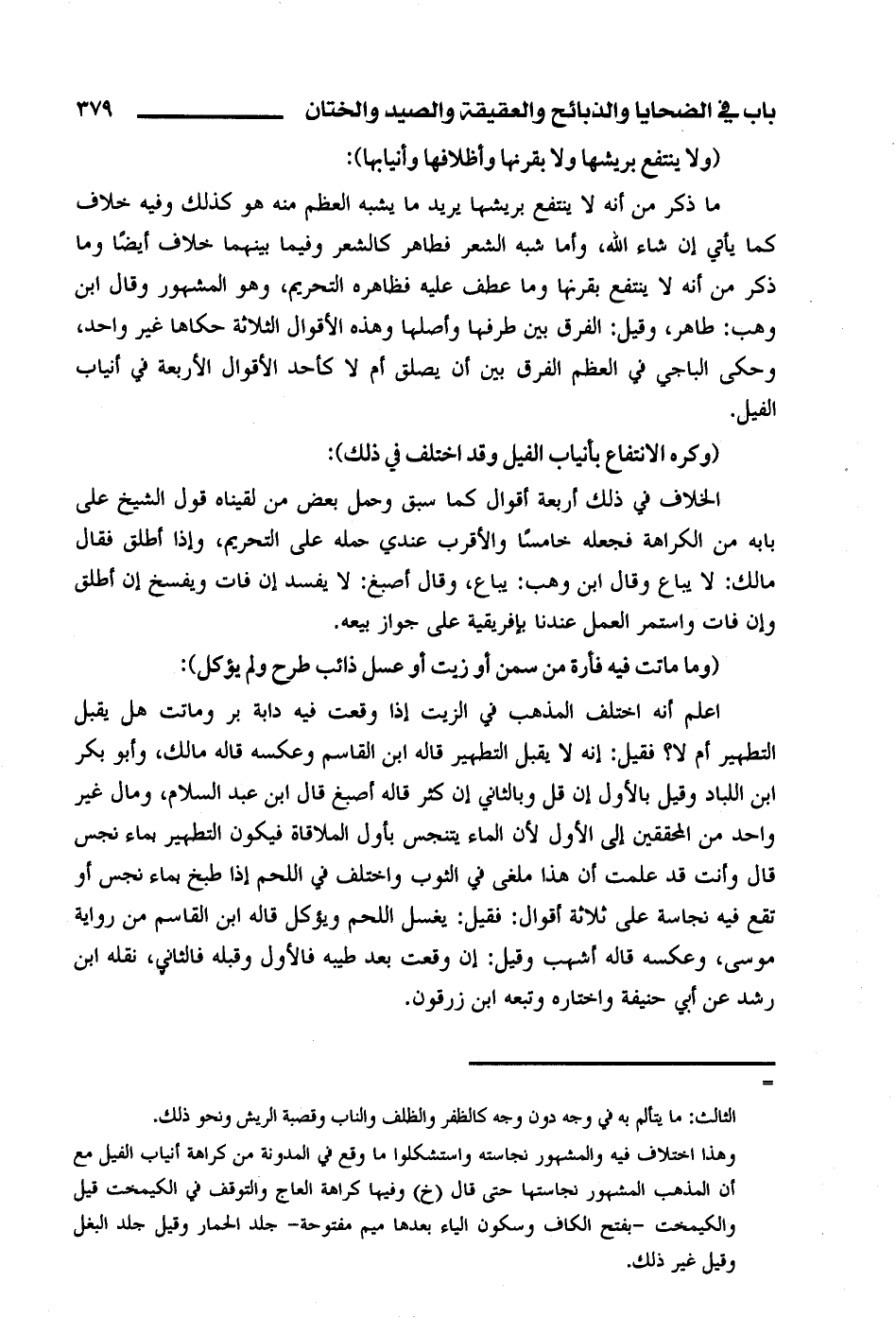(وكره الانتفاع بأنياب الفيل وقد اختلف في ذلك):