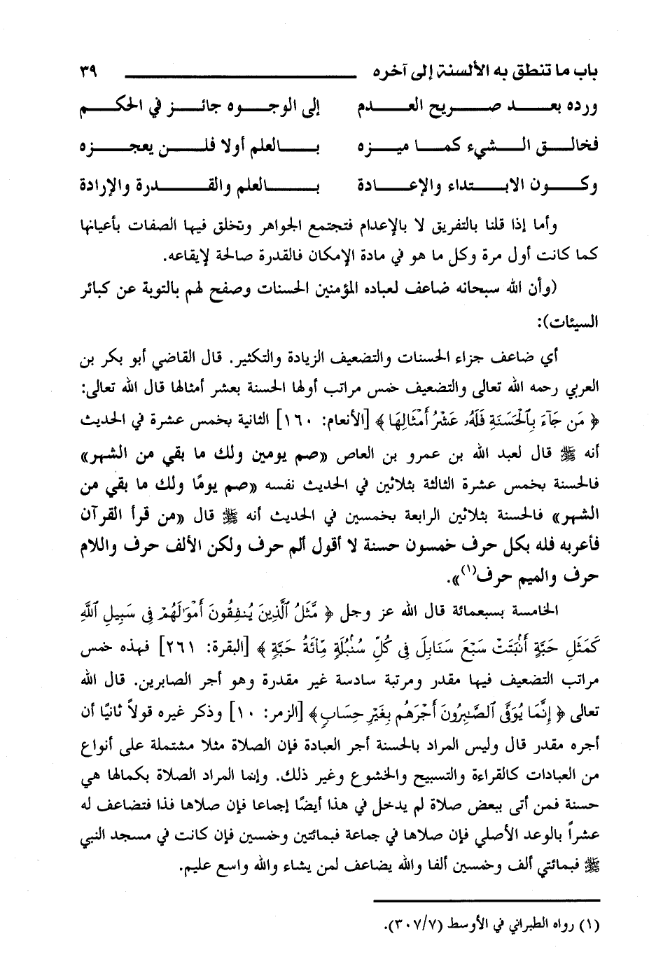 فهذه خمس مراتب التضعيف فيها مقدر ومرتبة سادسة غير مقدرة وهو أجر الصابرين. قال الله تعالى (إنما يوفى الصابرون أجرهم بغير حساب) [الزمر: 10]