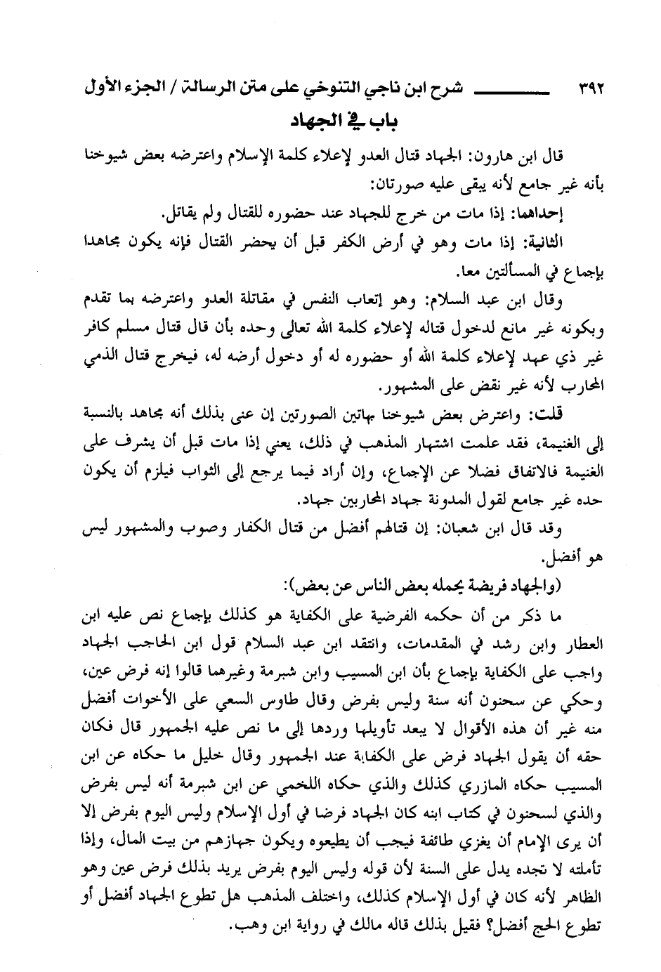 كتاب شرح ابن ناجي التنوخي على متن الرسالة (اسم الجزء: 1)