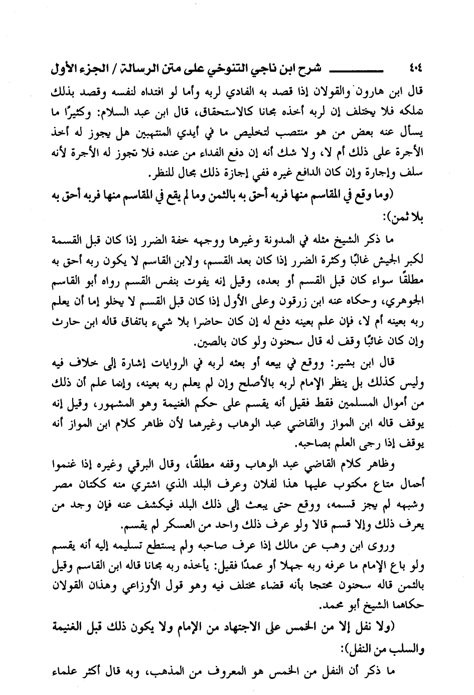 كتاب شرح ابن ناجي التنوخي على متن الرسالة (اسم الجزء: 1)