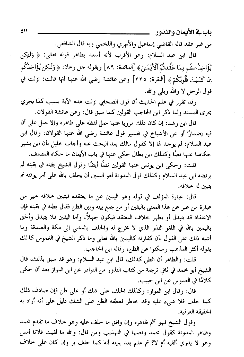 قلت: والظاهر أن الظن كذلك، قال ابن عبد السلام: وهو قد سبق بذلك، وقال الشيخ أبو محمد في ثاني ترجمة من كتاب النذور من النوادر عن ابن المواز بعد أن حكى كلامًا في الغموس عن ابن حبيب.