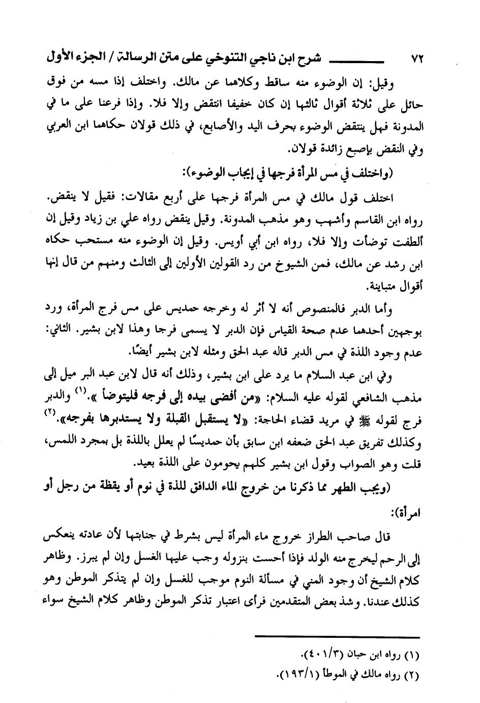 كتاب شرح ابن ناجي التنوخي على متن الرسالة (اسم الجزء: 1)