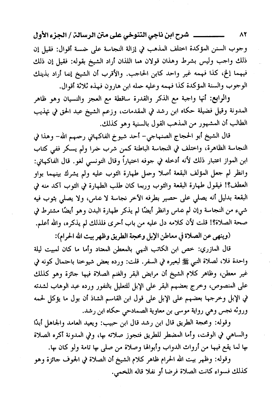 كتاب شرح ابن ناجي التنوخي على متن الرسالة (اسم الجزء: 1)