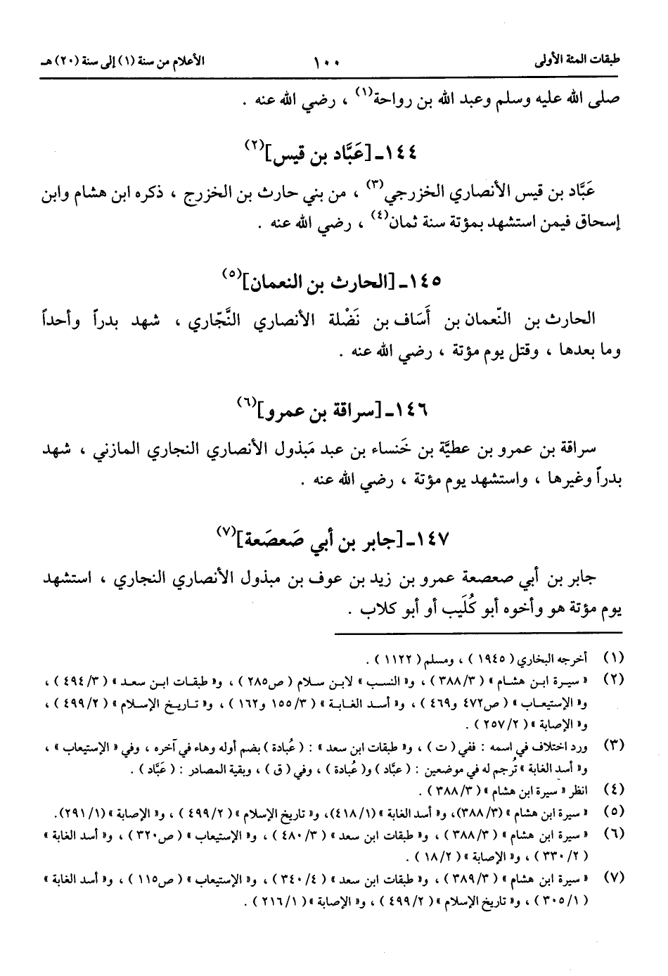 (7) «سيرة ابن هشام» (3/ 389)، و «طبقات ابن سعد» (4/ 340)، و «الاستيعاب» (ص 115)، و «أسد الغابة» (1/ 305)، و «تاريخ الإسلام» (2/ 499)، و «الإصابة» (1/ 216).