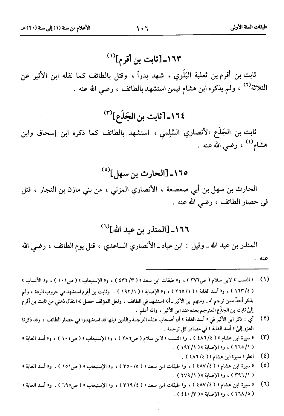 (6) «سيرة ابن هشام» (4/ 487)، و «طبقات ابن سعد» (4/ 369)، و «الاستيعاب» (ص 695)، و «أسد الغابة» (5/ 268)، و «الإصابة» (3/ 440).