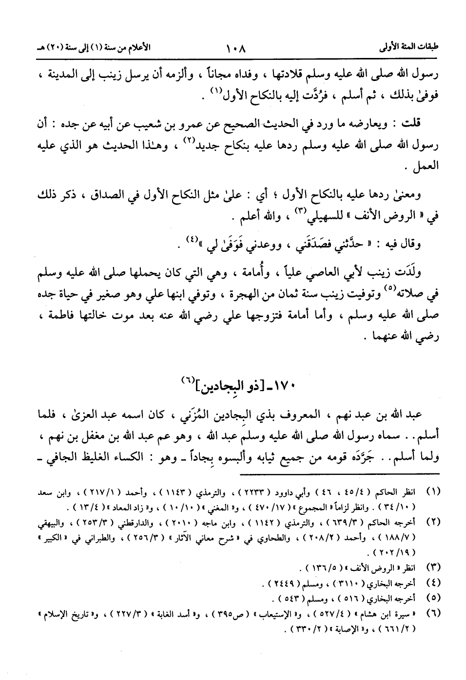 (6) «سيرة ابن هشام» (4/ 527)، و «الاستيعاب» (ص 395)، و «أسد الغابة» (3/ 227)، و «تاريخ الإسلام» (2/ 661)، و «الإصابة» (2/ 330).